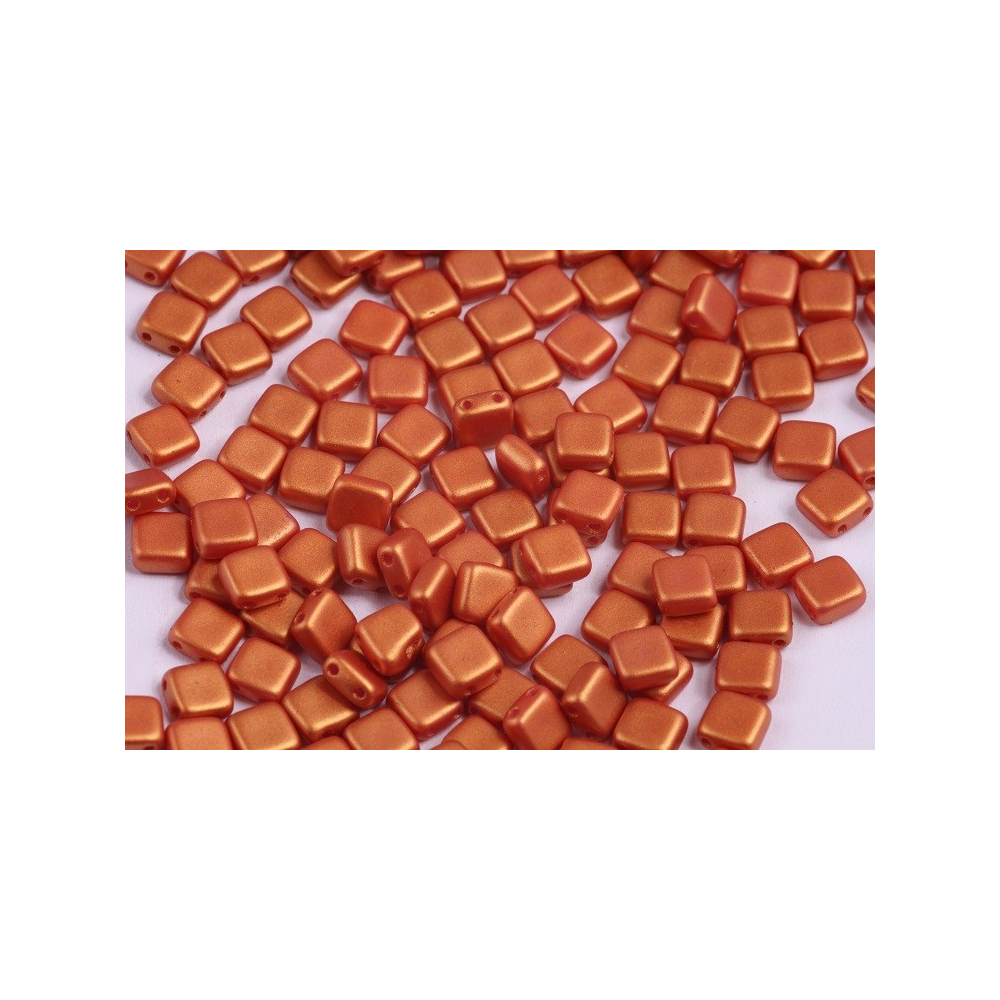 Terakotová barva s hedvábným zlatým odleskem dodává těmto korálkům hřejivý a luxusní nádech, který skvěle vynikne v podzimních i elegantních večerních designech. Tyto Tile beads neboli dvoudírkové čtverečky o rozměru 6 x 6 mm patří mezi nejoblíbenější komponenty pro moderní šitý šperk díky své geometrické přesnosti a stabilitě v řadách.