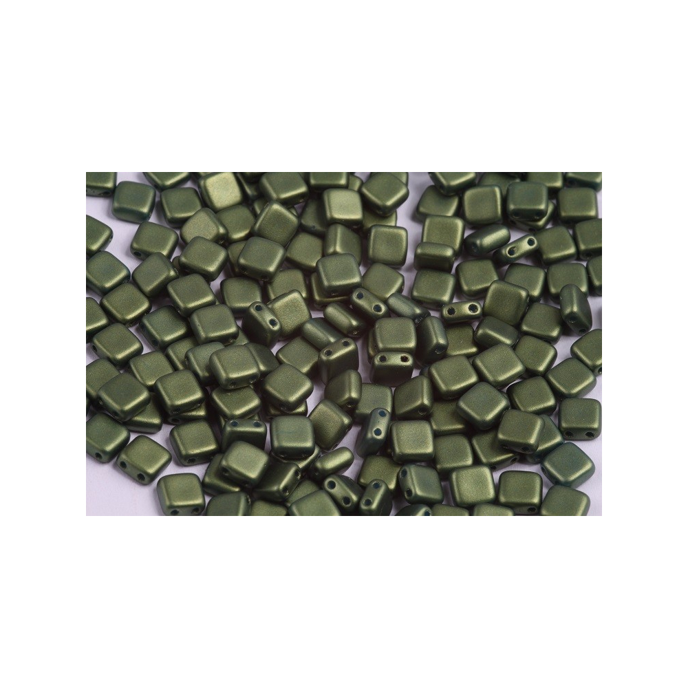Tmavě olivová barva se zlatým odleskem dodává těmto Tile beads neobyčejnou hloubku a sofistikovaný vzhled. Tyto dvoudírkové čtverečky o rozměru 6 x 6 mm pocházejí z dílny Rutkovský, což je tradiční rodinná firma zaměřená na ruční výrobu skleněných prvků. Povrchová úprava se saténovým leskem krásně spolupracuje se světlem a vytváří luxusní dojem, který vynikne v moderních i klasických designech.