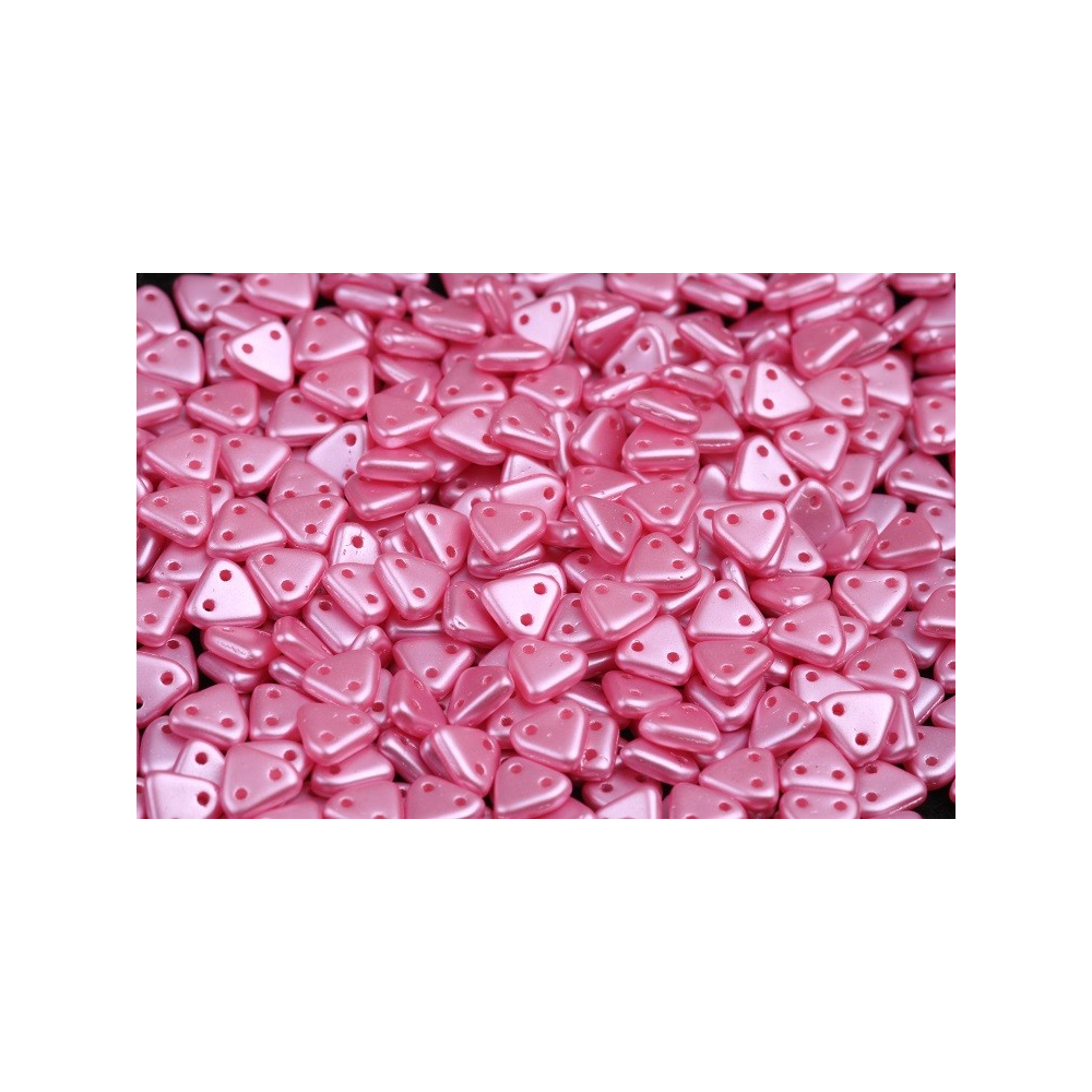 Dvoudírkové trojúhelníkové korálky o velikosti 6x6mm jsou inovativním prvkem pro každého, kdo se věnuje tvorbě šperků. Vyrobené z kvalitního skla v České republice, tyto korálky jsou známé svou trvanlivostí a jedinečným designem. Díky dvěma protilehlým otvorům, umístěným na každém z bázových úhlů trojúhelníku, nabízí vynikající flexibilitu v použití a umožňují vytvářet složité vzory a struktury, což je činí ideálními pro pokročilé techniky korálkování.