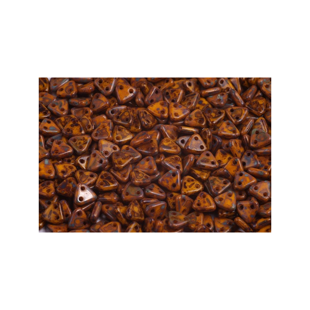Dvoudírkové trojúhelníkové korálky o velikosti 6x6mm jsou inovativním prvkem pro každého, kdo se věnuje tvorbě šperků. Vyrobené z kvalitního skla v České republice, tyto korálky jsou známé svou trvanlivostí a jedinečným designem. Díky dvěma protilehlým otvorům, umístěným na každém z bázových úhlů trojúhelníku, nabízí vynikající flexibilitu v použití a umožňují vytvářet složité vzory a struktury, což je činí ideálními pro pokročilé techniky korálkování.