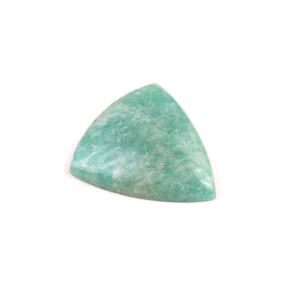 Tento kabošon je ideální pro šperkařské projekty, kde vynikne jeho přirozená barva a jemné kresby. Hodí se pro různé techniky, včetně obcínování nebo obdrátkování, které podtrhnou jeho krásu a jedinečnost. Amazonit se často spojuje s rovnováhou a vnitřním klidem, přičemž se věří, že podporuje komunikaci a dává najevo svou pravdu.