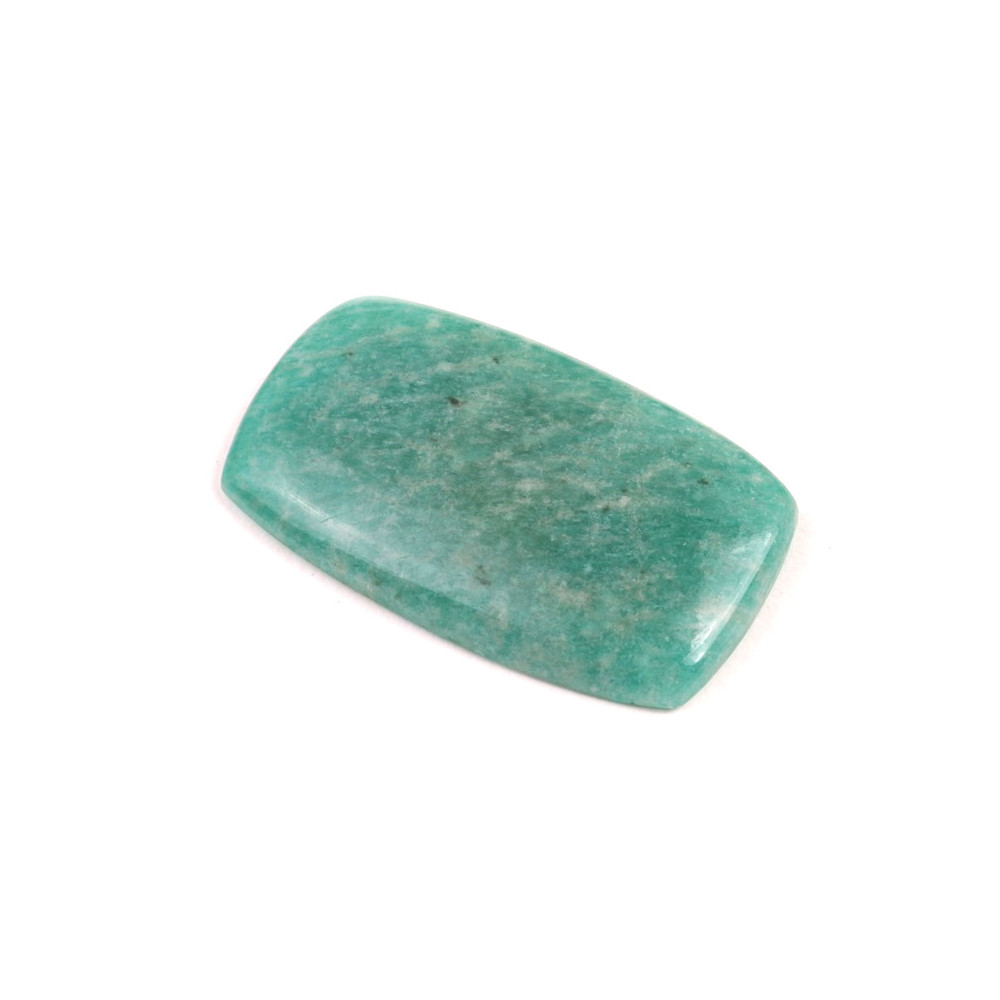 Tento kabošon je ideální pro šperkařské projekty, kde vynikne jeho přirozená barva a jemné kresby. Hodí se pro různé techniky, včetně obcínování nebo obdrátkování, které podtrhnou jeho krásu a jedinečnost. Amazonit se často spojuje s rovnováhou a vnitřním klidem, přičemž se věří, že podporuje komunikaci a dává najevo svou pravdu.
