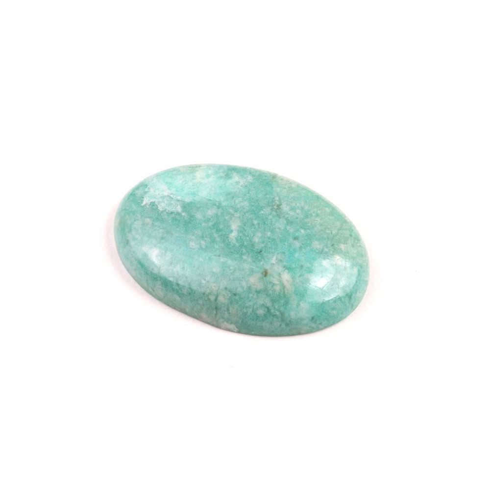 Amazonit, s jemným zeleným až modrozeleným odstínem, je známý jako kámen klidu a harmonie. Tento přírodní kabošon z Amazonitu vyniká jemnými bílými liniemi a zrnky, které zjemňují uklidňující vzhled připomínající vody a svěží přírodu. Amazonit byl po staletí oblíbeným kamenem v kultuře od starověkého Egypta po Mesoameriku, kde byl ceněn pro svůj krásný vzhled a pozitivní účinky na ducha.