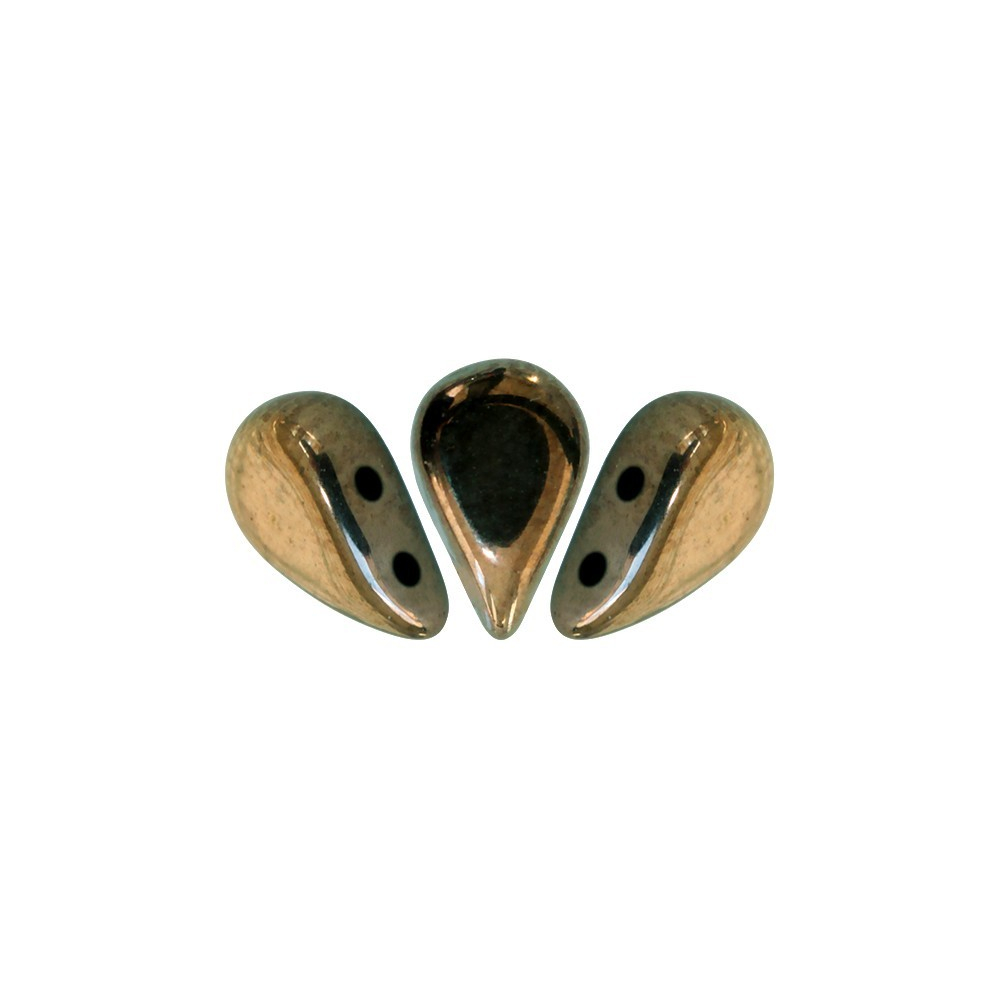 Rozměry 5 x 8 mm a precizně vylisovaný kapkovitý tvar definují korálky Amos® par Puca® v elegantním metalickém odstínu DARK GOLD BRONZE. Tento specifický komponent z českého skleněného mačkaného skla disponuje dvěma paralelními průtahy o průměru 0,8 mm, které zajišťují dokonalou stabilitu při technice šití šperků a umožňují vícenásobný průchod nití korálkem bez rizika poškození materiálu.