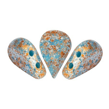 Tyrkysová barva s měděnými a stříbrnými odlesky vdechne vašim šperkům život a připomene prázdninovou atmosféru u moře. Představte si elegantní náramek, kde se tyto dvoudírkové skleněné korálky Amos® par Puca® jemně proplétají a vytvářejí organické tvary připomínající okvětní lístky. Každý korálek v odstínu Opaque Blue Turquoise Tweedy vypráví svůj vlastní příběh díky unikátnímu rozložení metalických střípků na povrchu, které vytvářejí dojem vzácné patiny.