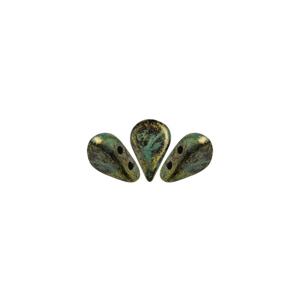 Rozměr 5 x 8 mm a precizně vrtané dva otvory o průměru 0,8 mm definují korálky Amos® par Puca® v unikátním odstínu METALLIC MAT GREEN SPOTTED. Tento tvar okvětního lístku od francouzské designérky Annick Puca představuje dokonalé spojení mezi pařížským šarmem a tradičním českým mačkaným sklem, které zajišťuje špičkovou kvalitu a stálost barev.