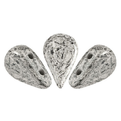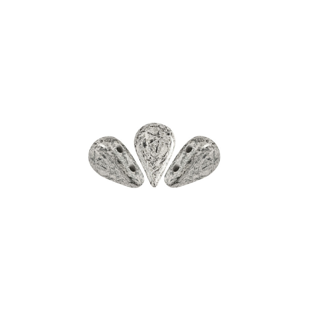 Dvoudírkové skleněné korálky Amos® par Puca® 5 x 8 mm METALLIC MAT OLD SILVER SPOTTED...