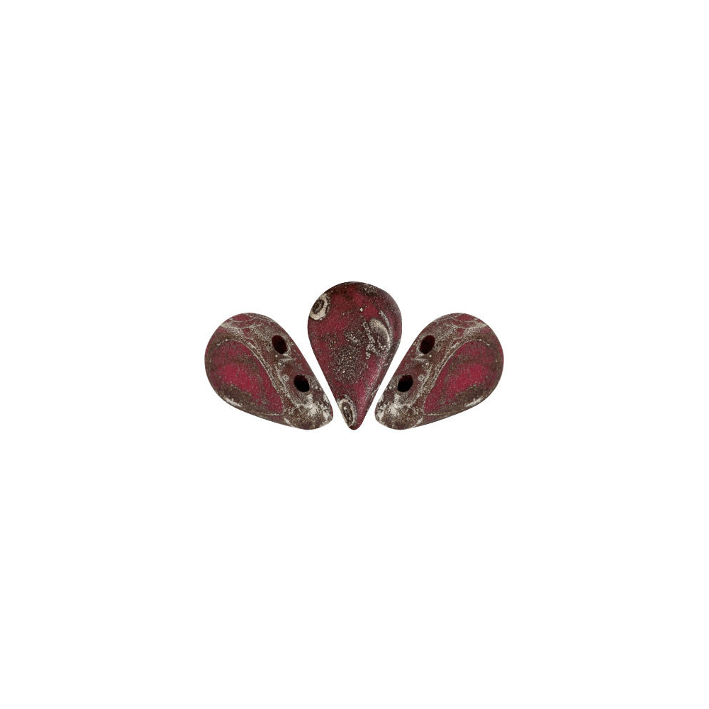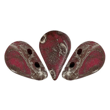 Burgundská červeň s uměleckou patinou připomínající plátna starých mistrů vdechne vašim šperkům hloubku a nezaměnitelný charakter. Tyto skleněné korálky Amos® par Puca® představují dokonalé spojení francouzského designu od Annick Puca a české sklářské tradice, které vyústilo v elegantní tvar okvětního lístku či kapky. Povrchová úprava Rembrandt mat dodává korálkům jemně zrnitý, zemitý vzhled, který vynikne v náhrdelnících i náušnicích s historickým nádechem.