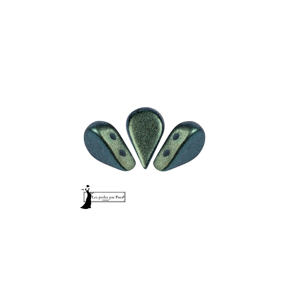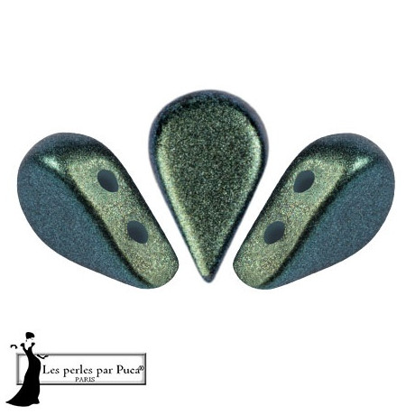 Smaragdově zelené odstíny s hlubokým metalickým leskem definují tyto skleněné korálky Amos® par Puca®, které v sobě spojují precizní českou sklářskou tradici s vytříbeným francouzským designem. Tyto dvoudírkové korálky o rozměru 5 x 8 mm disponují dvěma paralelními průtahy o průměru 0,8 mm, což umožňuje bezproblémový vícenásobný průchod nití korálkem i při tvorbě složitých prostorových vzorů. Unikátní tvar kapky byl navržen designérkou Annick Puca tak, aby geometricky dokonale zapadal do schémat vedle dalších prvků z kolekce, jako jsou například Arcos® par Puca® nebo Delos® par Puca®.