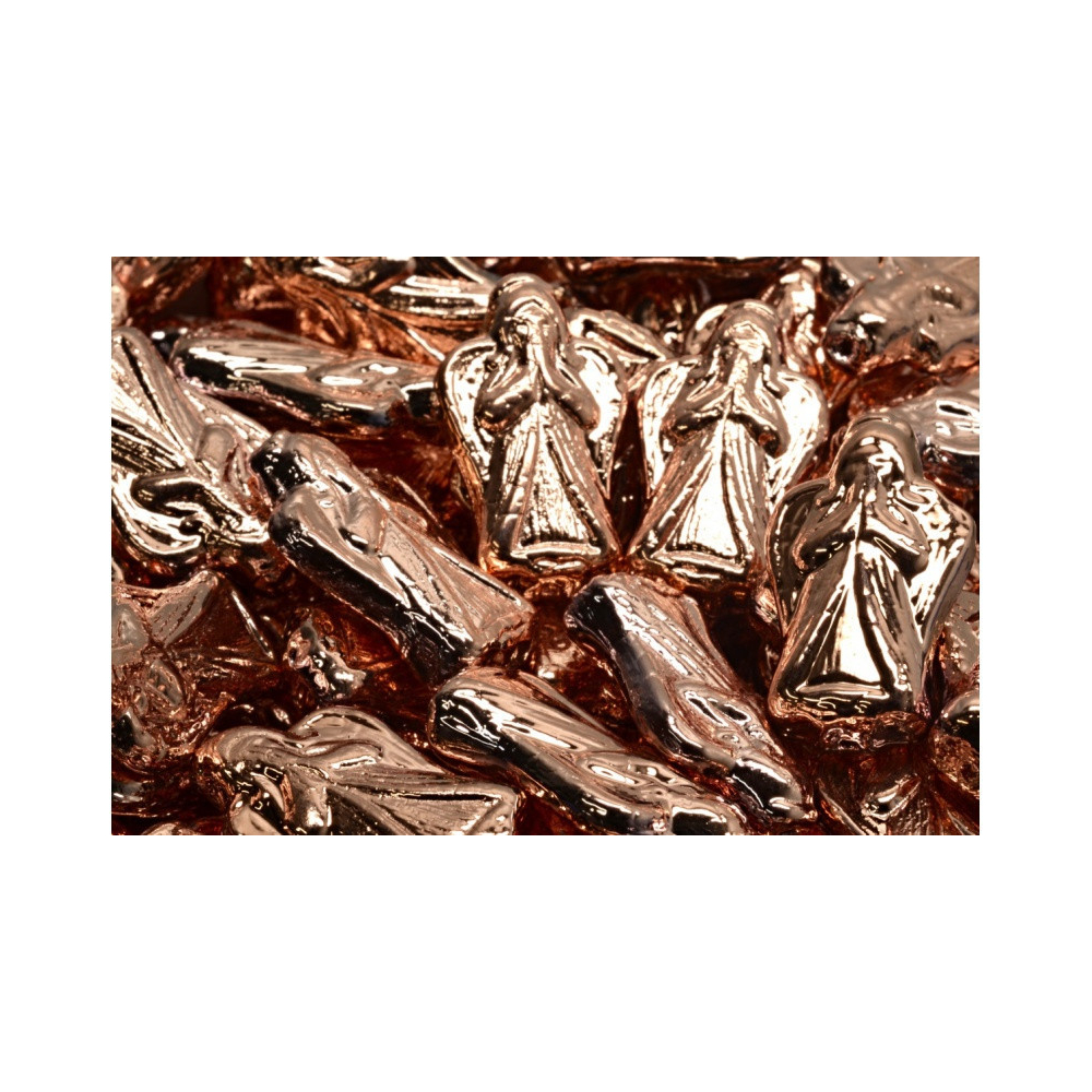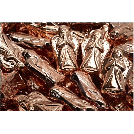 Rose gold metalický povrch těchto ručně mačkaných skleněných korálků dodává každému kreativnímu projektu nádech luxusu a nadčasové elegance. Angel Beads o rozměru 23 x 13 mm pocházejí z dílny rodinné firmy Rutkovský, Česká republika, kde se dodnes dbá na tradiční české sklářství a precizní zpracování každého detailu. Skleněné korálky ve tvaru anděla s vysokým leskem jsou ideální volbou pro tvorbu autorské bižuterie s hlubší symbolikou.