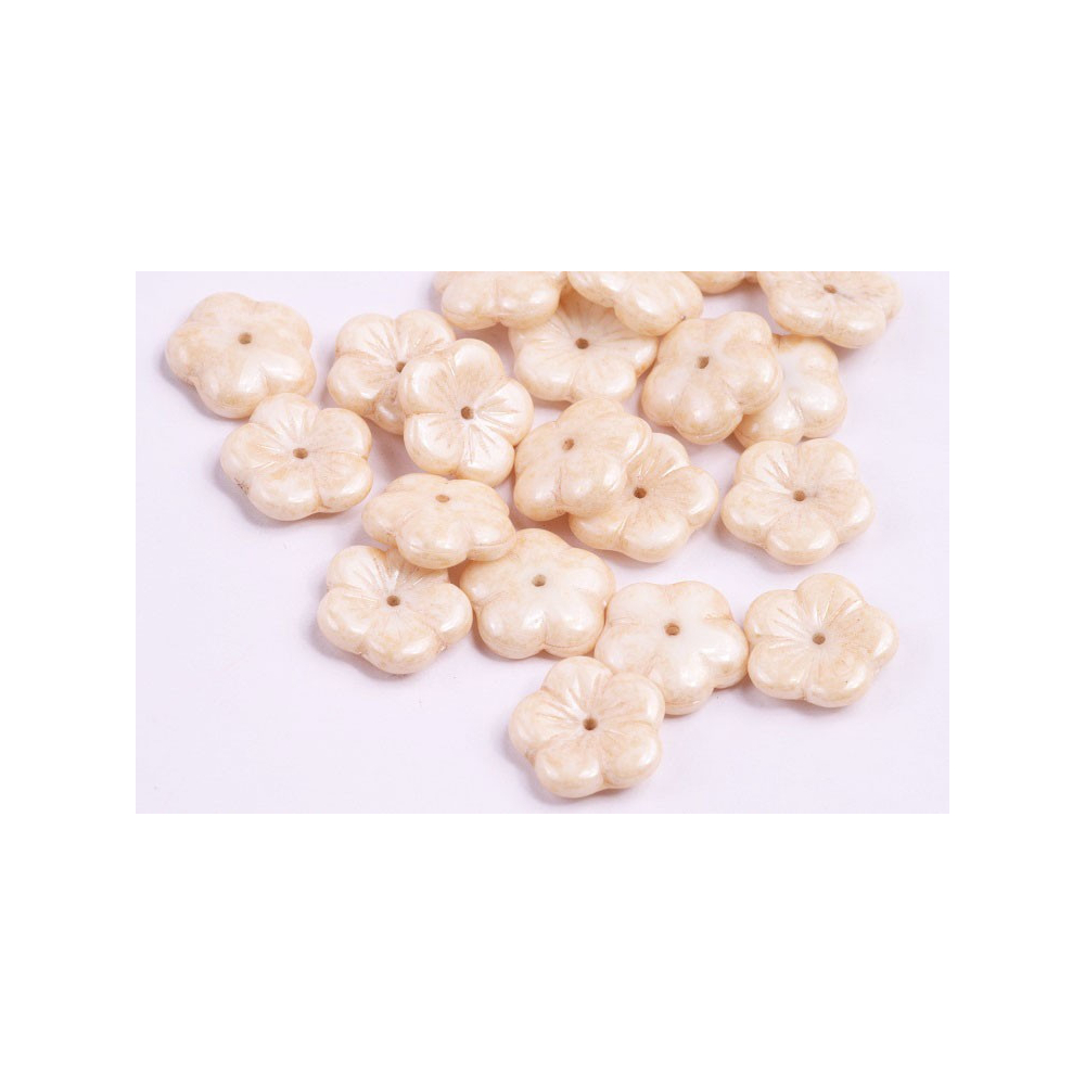 Apple Flower Beads 14 x 14 WHITE ALABASTER LIGHT BEIGE OPAQUE