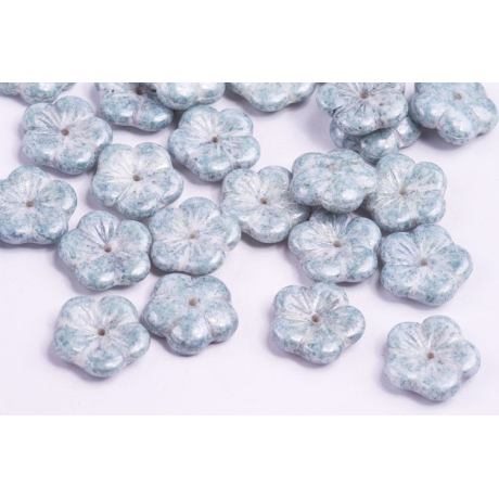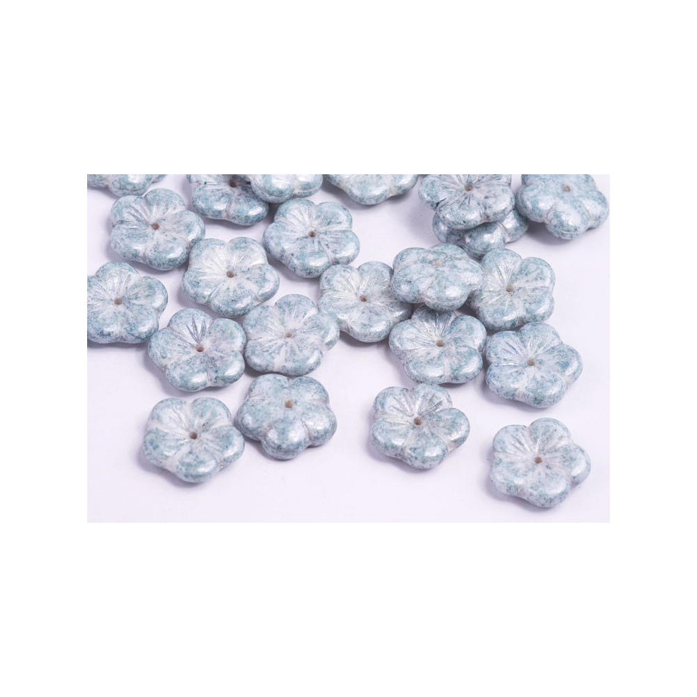 Apple Flower Beads 14 x 14 WHITE ALABASTER BLUE TERRACOTTA 02010/15464