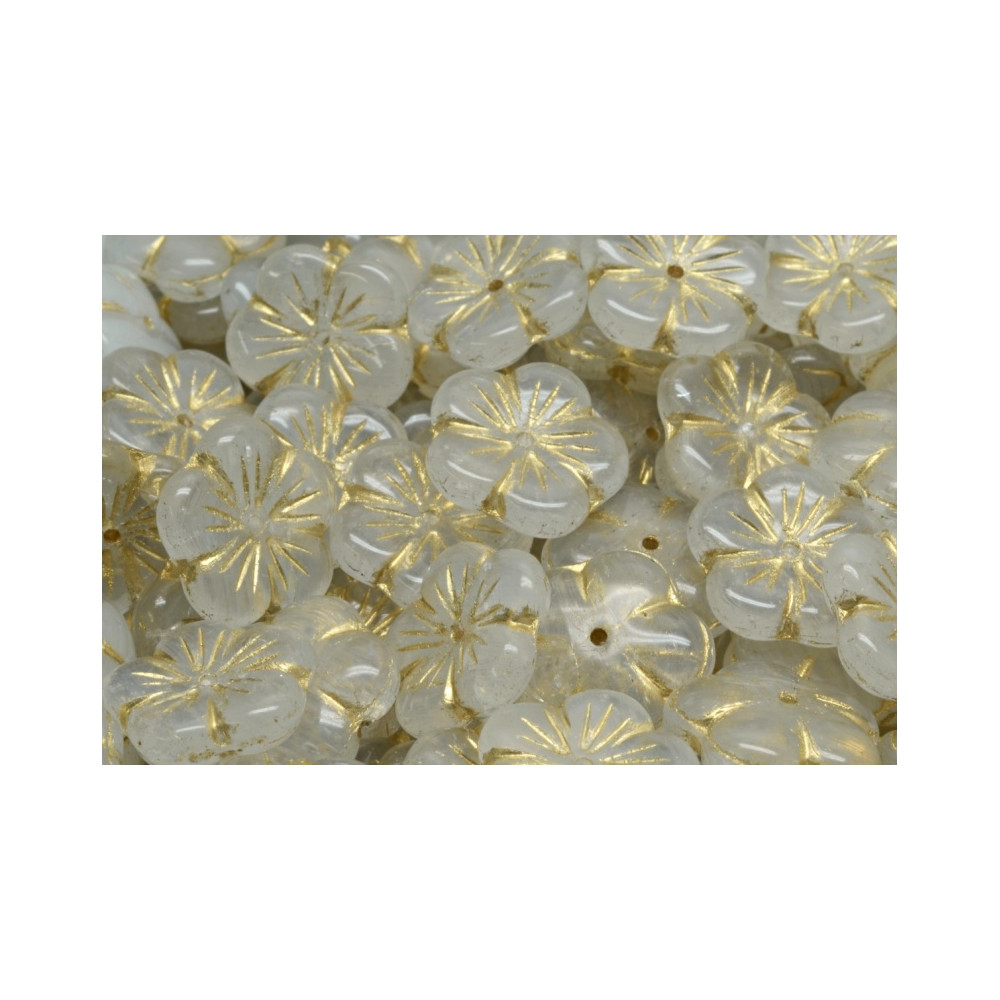 Bell Flower Cup Beads 7x5 - Květinový zvonek White Alabaster, Gold Capri, Half 02010/27101...
