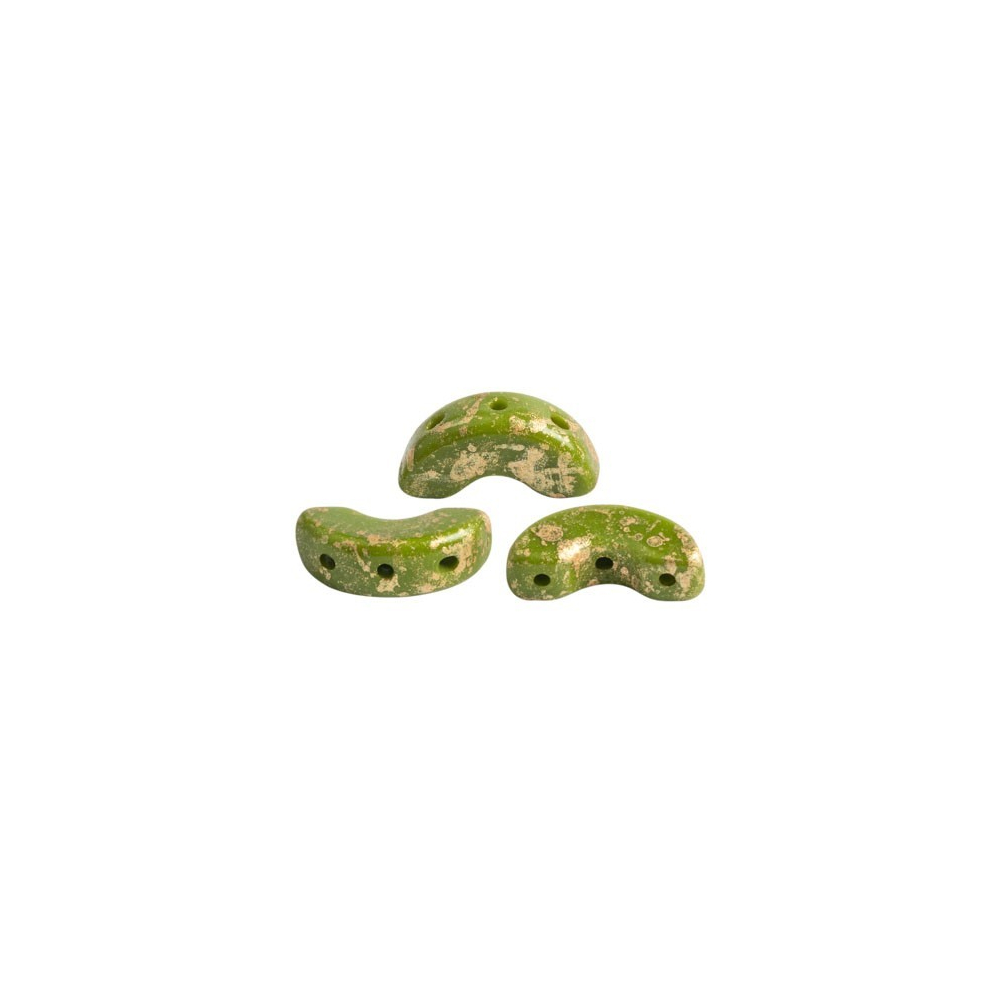 Zelená barva s efektním zlatým cákancem vyřeší vaše dilema, jak dodat šitým šperkům organický a přitom luxusní vzhled bez složitého kombinování materiálů. Arcos® par Puca® v odstínu Opaque Green Splash přinášejí stabilitu a naprostou preciznost do každého vzoru, čímž eliminují frustraci z nepravidelných tvarů, které často kazí výsledný dojem. Tyto české skleněné korálky o velikosti 5 x 10 mm jsou navrženy francouzskou designérkou Annick Puca tak, aby jejich tři otvory umožnily naprosto přesné geometrické kompozice a náročné prostorové tvary.