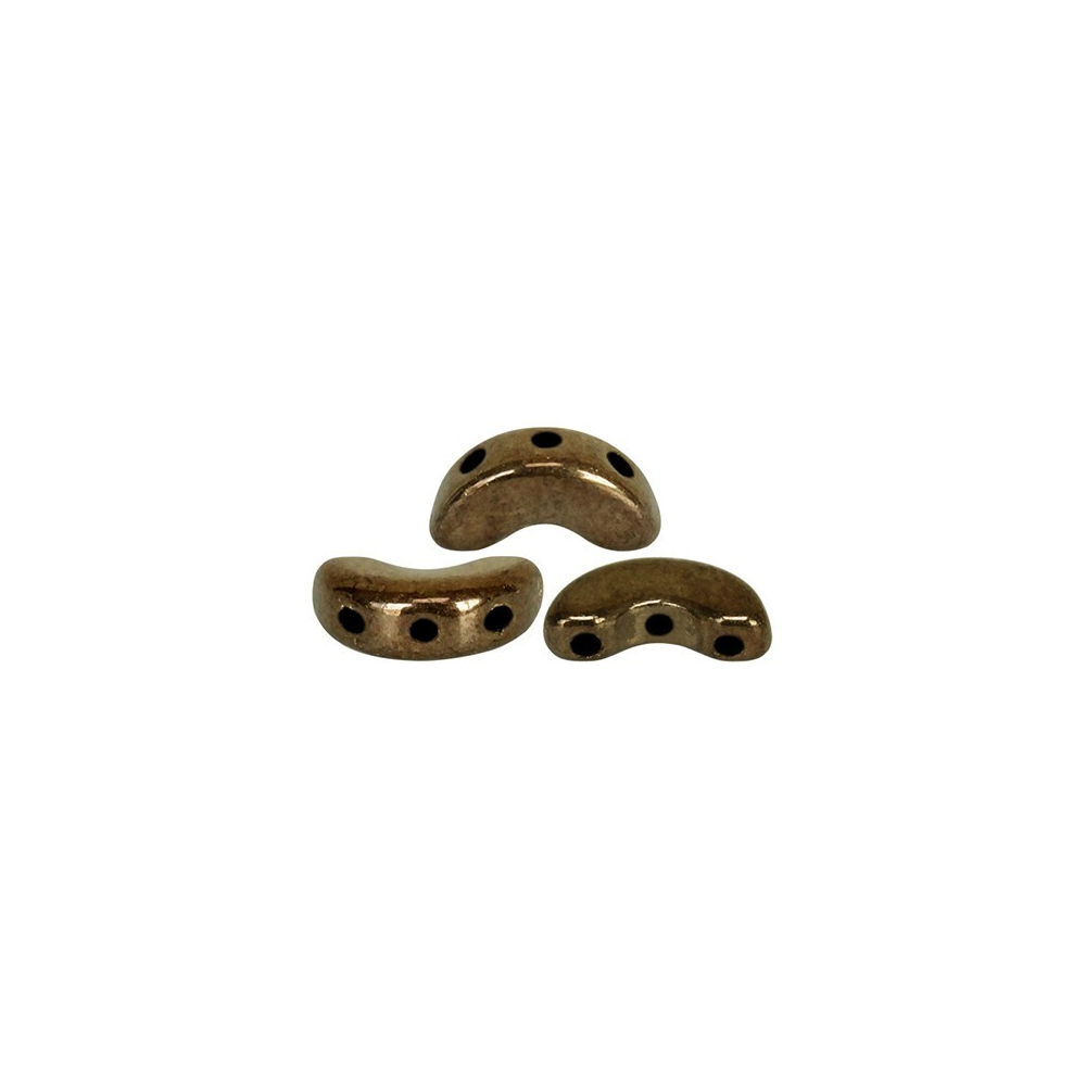 Hledáte způsob, jak do svých šitých šperků vnést dokonalou symetrii a elegantní křivky, které se nebortí? Mačkané korálky Arcos® par Puca® v odstínu DARK GOLD BRONZE představují profesionální řešení pro každou designérku, která vyžaduje preciznost a stabilitu. Díky svému unikátnímu tvaru půlměsíce se třemi otvory řeší tyto korálky častý problém s nestálostí tvaru u složitějších vzorů, čímž šetří váš čas při neustálém opravování napnutí nitě.