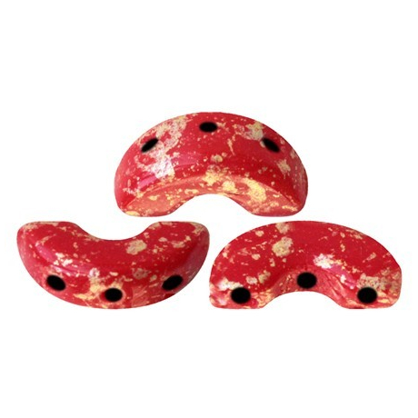 Tradiční české sklářství se v unikátním tvaru Arcos® par Puca® střetává s vytříbeným francouzským citem pro detail, který do světa korálkování přinesla designérka Annick Puca. Tyto luxusní mačkané korálky ve tvaru půlměsíce o rozměru 5 x 10 mm vynikají sytou barvou Opaque Coral Red Splash, která díky nepravidelnému kropení dodává každému šperku organický a neopakovatelný charakter. Díky preciznímu zpracování a třem průtahům o velikosti 0,8 mm jsou ideální pro vytváření složitých architektonických prvků, kde Cabochon® par Puca® tvoří centrální bod elegantně orámovaný právě těmito obloukovými tvary.