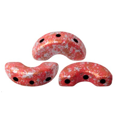 Skleněné mačkané korálky Arcos® par Puca® 5 x 10 mm OPAQUE CORAL RED SPLASH 93200/94401...