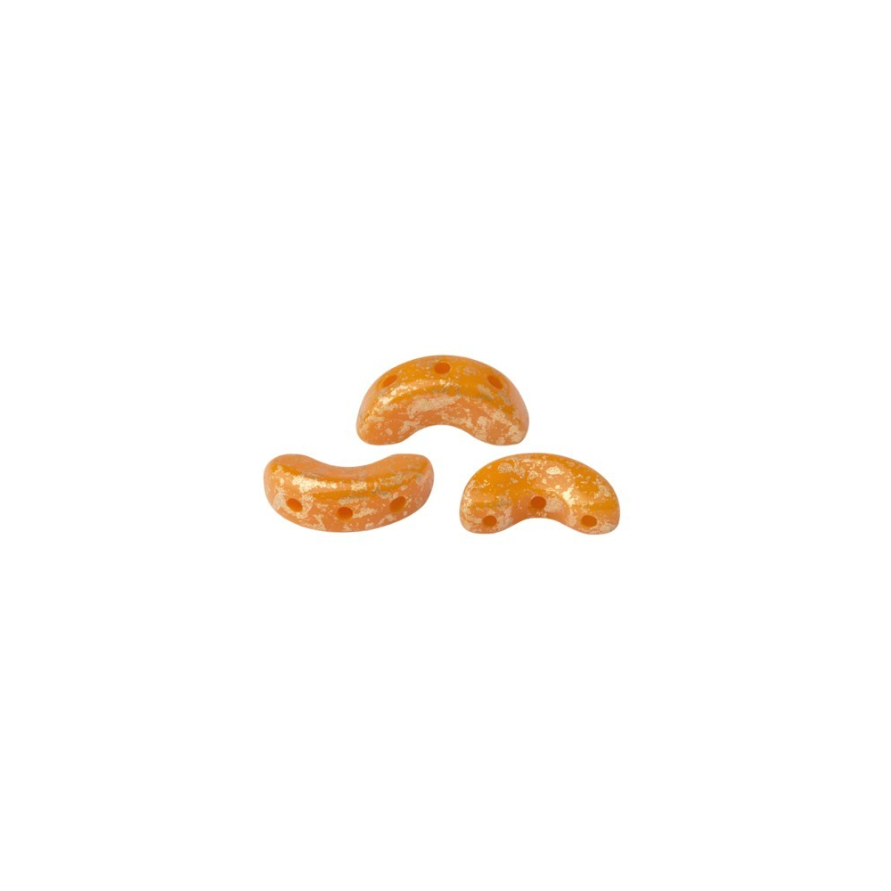 Hřejivá barva letního ovoce v kombinaci s luxusním zlatým zdobením definuje tyto Arcos® par Puca®, které vnášejí do bižuterní tvorby nádech pařížské elegance. Tyto české skleněné korálky jsou navrženy tak, aby svým tvarem půlměsíce vytvářely plynulé linie a dokonale lemovaly Cabochon® par Puca® v náročných designech šitých šperků. Pro dosažení maximální pevnosti a profesionálního výsledku doporučujeme pro vícenásobný průchod nití korálkem použít nit S-lon FIRE spolu s tenkou korálkovací jehlou velikosti 10-12, která zajistí hladký průběh vaší tvorby bez rizika prasknutí skla.