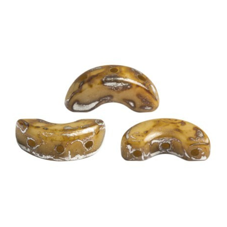 Béžový odstín Opaque Beige New Picasso a unikátní třídírková konstrukce charakterizují tyto skleněné mačkané korálky Arcos® par Puca® o rozměrech 5 x 10 mm. Jsou vyráběny v České republice podle návrhu francouzské designérky Annick Puca, což zajišťuje vysokou přesnost průtahů o velikosti 0,8 mm a snadnou kombinovatelnost s dalšími tvary, jako jsou například korálky Samos® par Puca®. Balení obsahuje 14 ks (cca 3 g), které díky svému geometrickému tvaru poloměsíce do sebe v náročných vzorech perfektně zapadají.