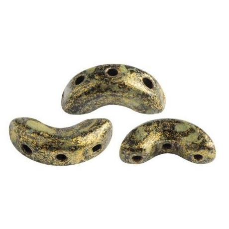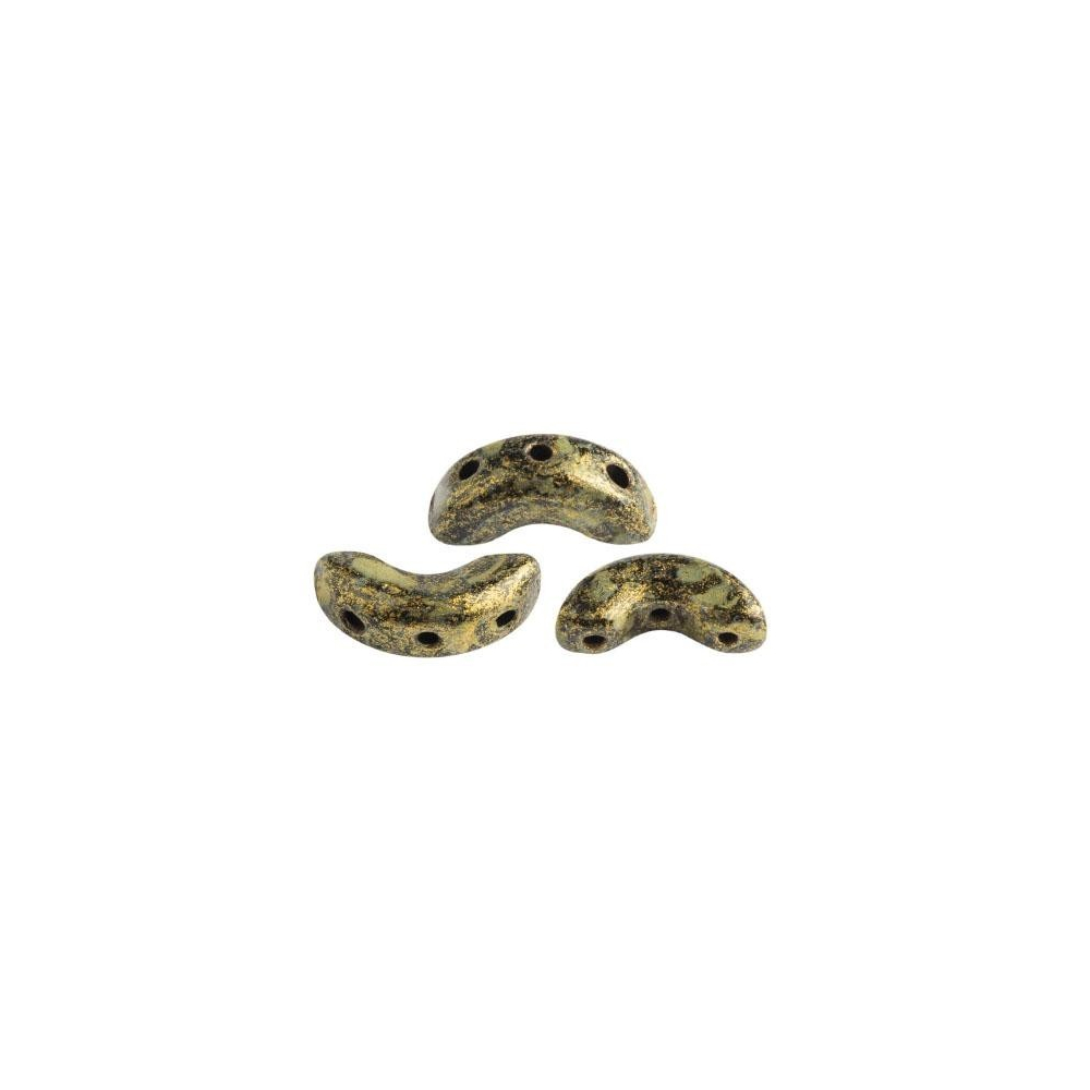 Skleněné mačkané korálky Arcos® par Puca® 5 x 10 mm METALLIC MAT OLD GOLD SPOTTED 23980/65322