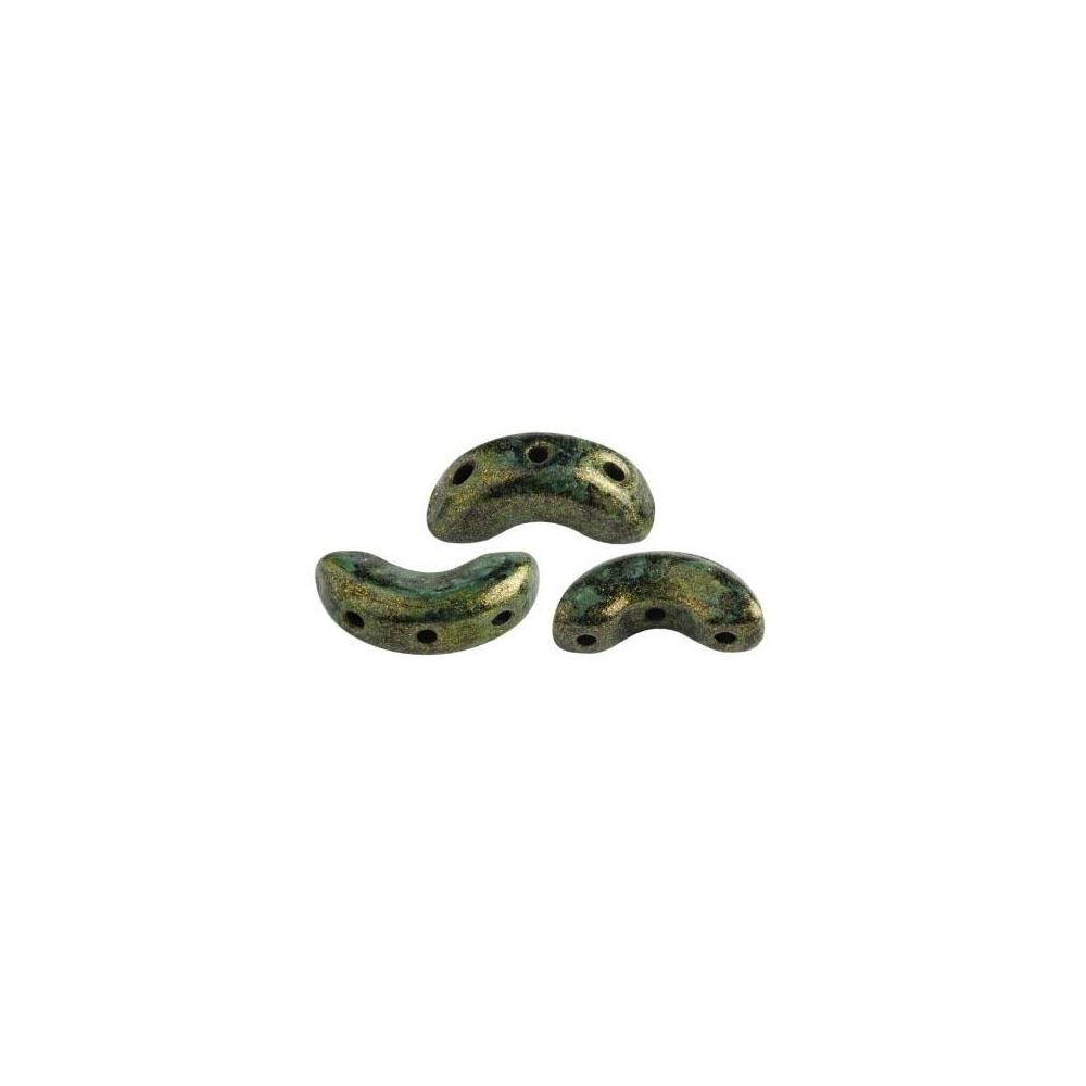 Křišťálové údolí na severu Čech dalo světu staletou tradici precizního mačkání skla, na kterou dnes s elegancí navazuje francouzská kolekce Les Perles par Puca®. Tyto unikátní skleněné mačkané korálky Arcos® par Puca® v odstínu METALLIC MAT GREEN SPOTTED představují dokonalé spojení řemeslné dovednosti českých sklářů a vytříbeného designu návrhářky Annick Puca. Specifický tvar půlměsíce se třemi otvory o velikosti 5 x 10 mm je konstruován tak, aby umožnil vytvářet složité geometrické vzory a krajkové motivy, přičemž v nich jako vkusná výplň nejlépe vynikne drobný rokajl Preciosa.