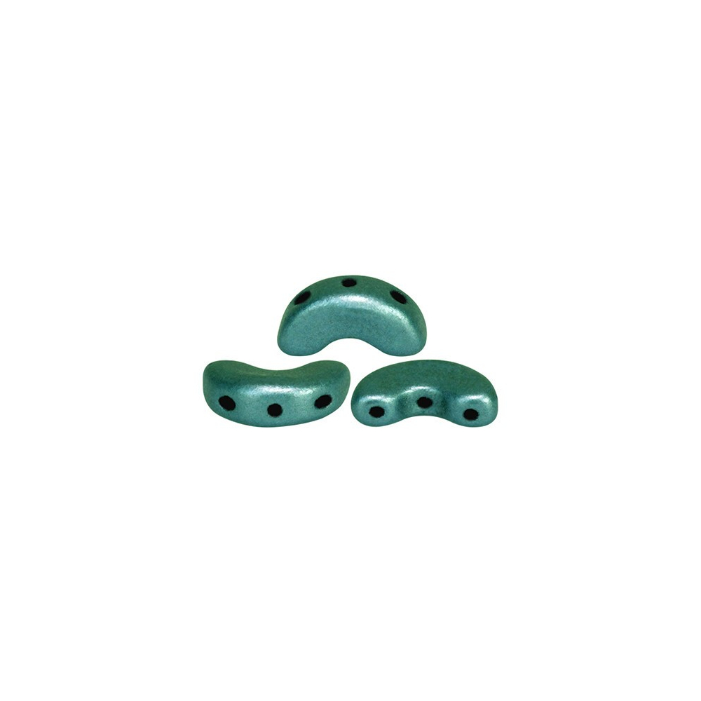 5 x 10 mm rozměry těchto korálků Arcos® par Puca® v barvě METALLIC MAT GREEN TURQUOISE zaručují naprostou přesnost při tvorbě složitých vzorů. Tyto precizně mačkané skleněné korálky disponují třemi průtahy o průměru 0,8 mm, které jsou dokonale vycentrovány pro plynulý průchod korálkovací jehly velikosti 10-12. Každé balení obsahuje 14 kusů (cca 3 g) tohoto unikátního materiálu, který je základním kamenem pro moderní šperkařství.