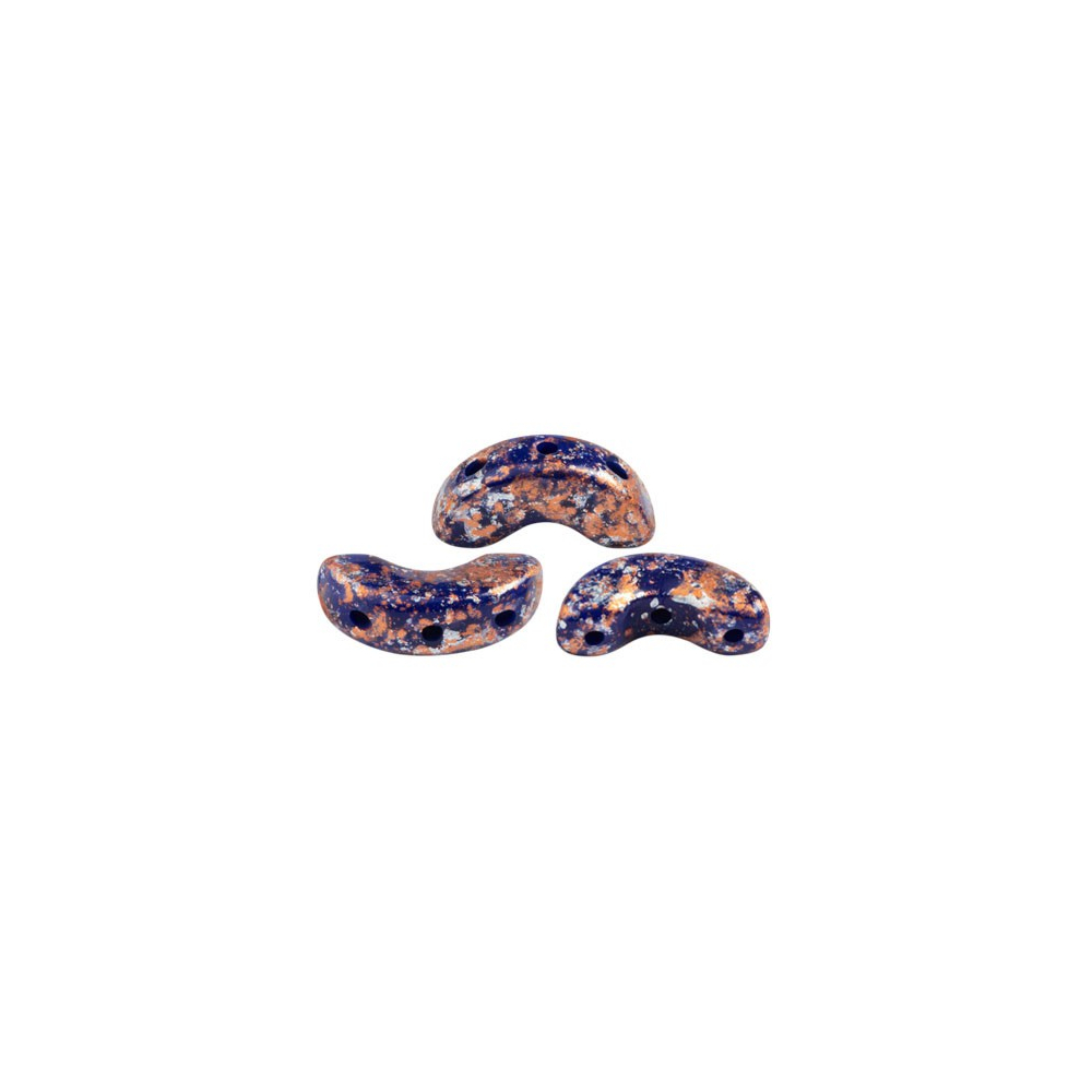 Hluboká safírová modř se v těchto korálcích mísí s metalickými odlesky, které připomínají noční oblohu plnou hvězd a vzdálených galaxií. Arcos® par Puca® č. 114 v uhrančivém odstínu Opaque Dark Sapphire Tweedy představují dokonalé ztělesnění francouzského designu Annick Puca v kombinaci s mistrovstvím české sklářské tradice. Díky unikátnímu tvaru půlměsíce se třemi otvory se tyto skleněné mačkané korálky stávají nepostradatelným prvkem pro šité šperky, kde mohou elegantně rámovat Cabochon® par Puca® a vytvářet tak plastické a bohaté textury.