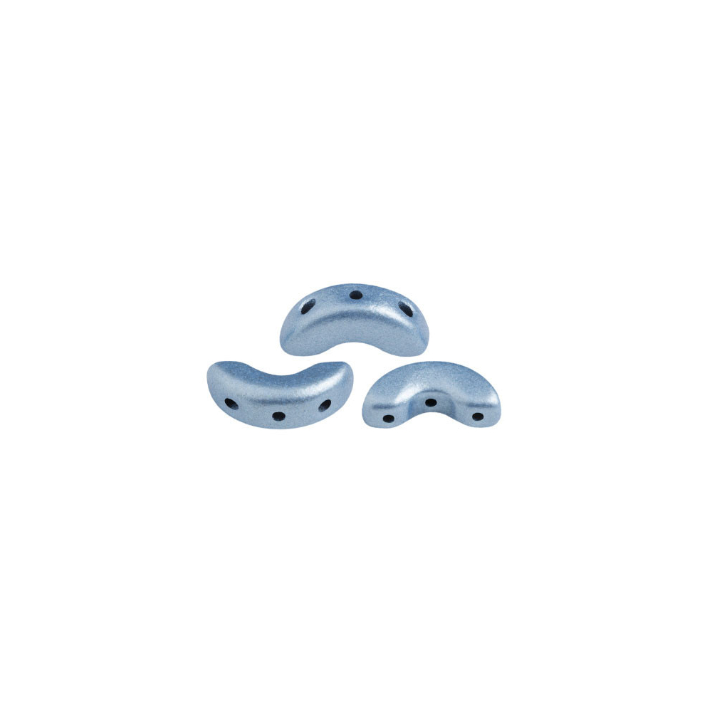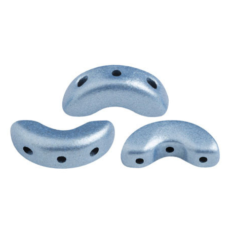 Matný metalický povrch v odstínu světle modré barvy dodává korálkům Arcos® par Puca® sofistikovaný vzhled, který nepůsobí rušivě, ale přesto zaujme svým kovovým odleskem. Díky svému specifickému obloukovému tvaru slouží tyto korálky jako dokonalé rámování pro Cabochon® par Puca®, čímž vytváří harmonické a symetrické vzory v náročnějších projektech. V plynulém textu krásně ladí s dalšími modrými tóny, ale pokud hledáte výrazný kontrast, zkombinujte je s korálovou nebo broskvovou barvou.