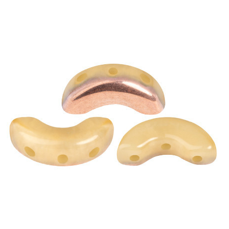 Jemná béžová barva v kombinaci s metalickým odleskem odráží aktuální trend návratu k přírodním tónům s nádechem luxusu. Tyto české skleněné korálky v odstínu Frost Camel Capri Gold představují ideální základ pro tvorbu sofistikovaných náhrdelníků i náušnic. Designérka Annick Puca navrhla tvar Arcos® par Puca® tak, aby evokoval elegantní oblouky, které dodají vašim projektům hloubku a dynamiku. V moderním šperkařství jsou tyto tvary ceněny pro svou schopnost vytvářet plynulé přechody a zajímavé geometrické vzory.