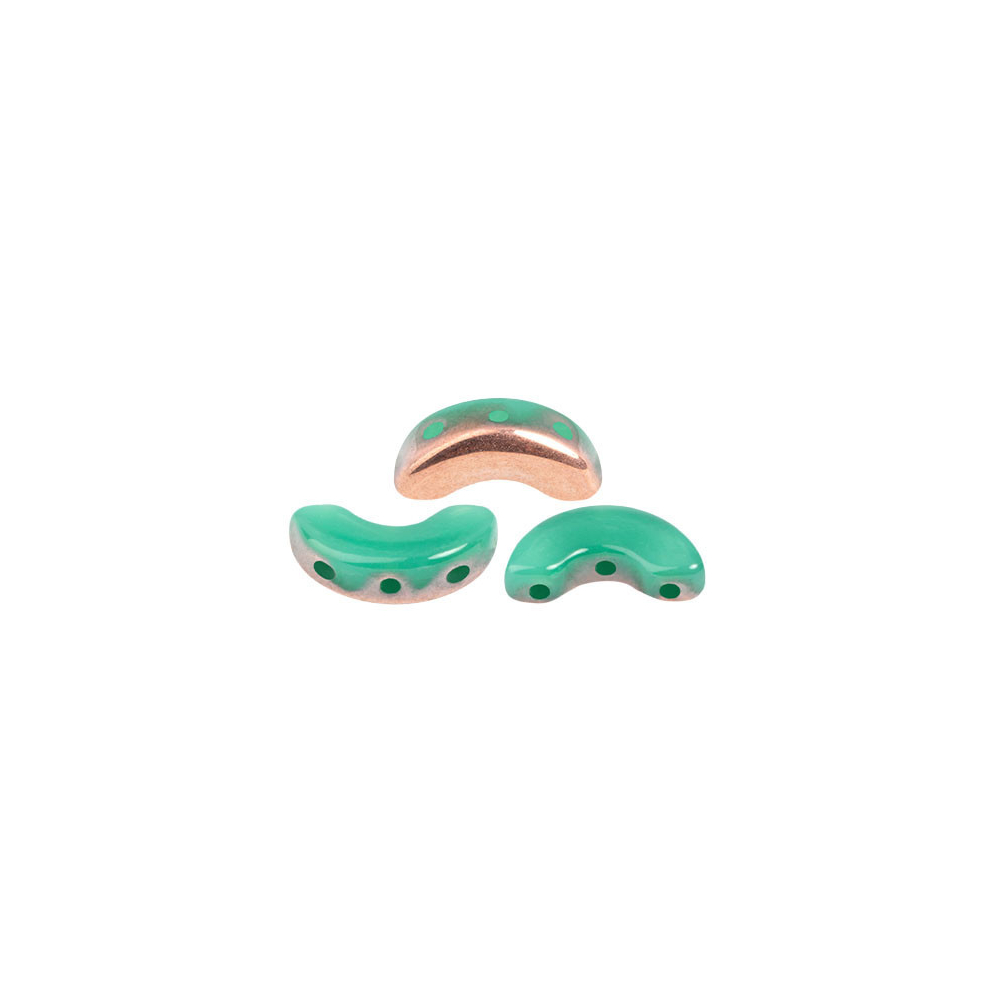 Matné provedení v barvě jadeitu v kombinaci s luxusním zlatým polopokovem Capri Gold vyřeší vaše starosti s hledáním ideálního tvaru pro plynulé křivky v bižuterii. Arcos® par Puca® o rozměru 5 x 10 mm z českého mačkaného skla jsou navrženy tak, aby svým unikátním tvarem půlměsíce se třemi průtahy o velikosti 0,8 mm umožnily precizní skládání složitých vzorů bez nevzhledných mezer. Francouzská designérka Annick Puca vytvořila tento systém, kde každý tvar dokonale zapadá do ostatních, čímž ušetříte čas při vymýšlení technicky náročných konstrukcí. Pro dosažení jemného vzhledu a stabilního tvaru zkombinujte tento odstín s harmonickým akvamarínem nebo průzračným krystalem.