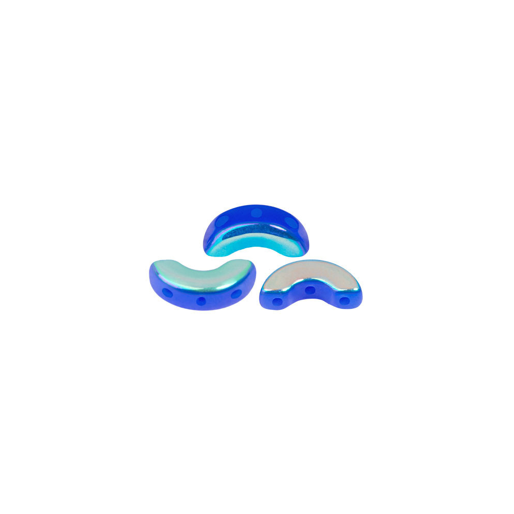 Hluboký tón královské modři v kombinaci s jemným matným povrchem a měňavými odlesky Aurora Borealis vytváří z těchto korálků Arcos® par Puca® skutečný klenot pro každou šperkařku. Tento unikátní tvar luku se třemi dírkami, který navrhla francouzská designérka Annick Puca, čerpá z bohaté tradice českého sklářství a umožňuje vytvářet složité geometrické vzory i elegantní organické křivky. Pro dosažení dechberoucího vizuálního efektu zkombinujte tuto sytě modrou s kontrastním oranžovým hyacintem, nebo sáhněte po harmonii s akvamarínem a stříbrnými akcenty. Skvěle fungují jako dekorativní orámování, pokud do svého projektu zakomponujete Cabochon® par Puca®, čímž dodáte šperku hloubku a profesionální vzhled.