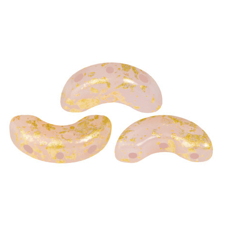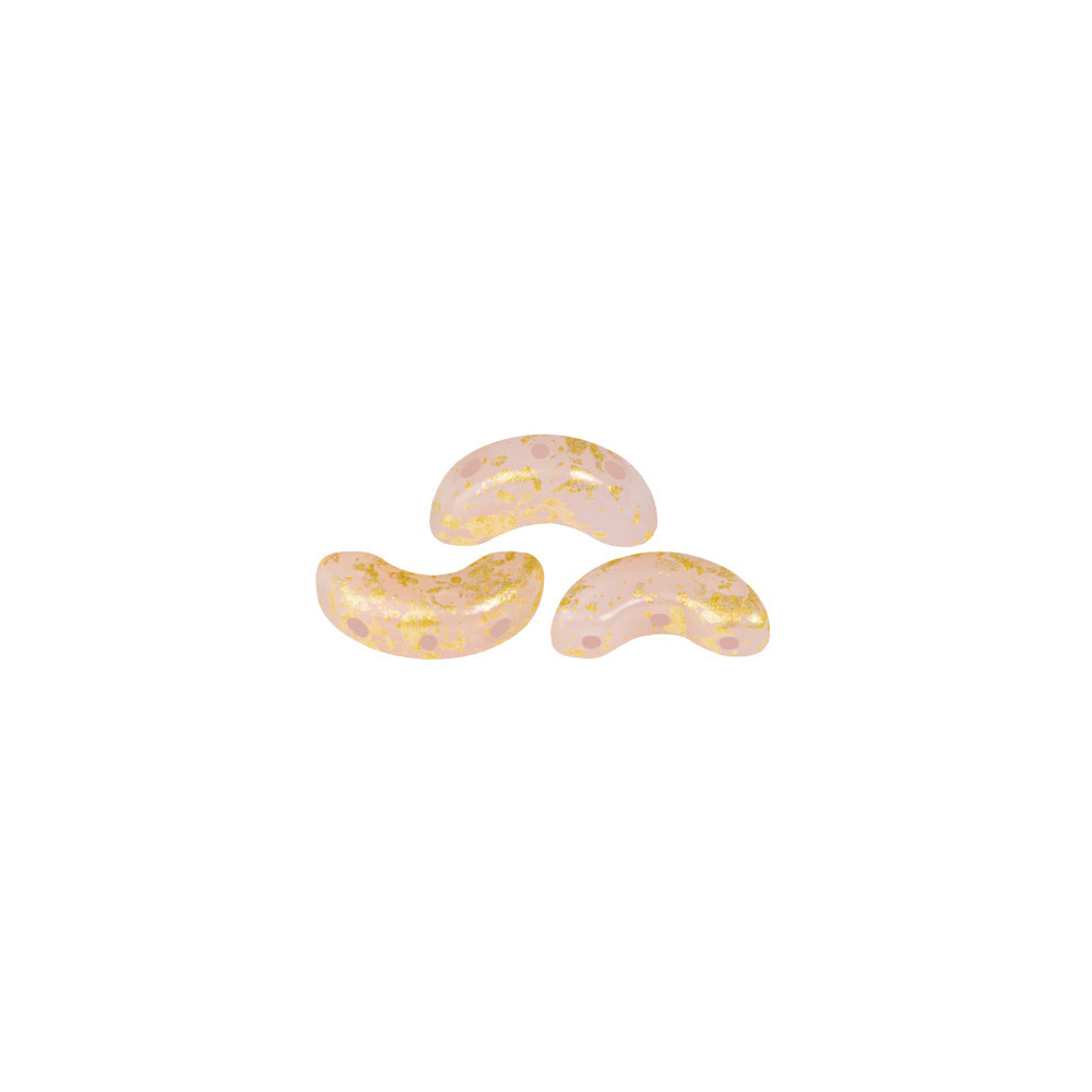 Romantické pastelové odstíny doplněné o jemné zlaté odlesky představují základní prvek současné šperkařské módy. Skleněné korálky Arcos® par Puca® v barevném provedení Frost Sweet Pink Splash v sobě spojují eleganci francouzského designu návrhářky Annick Puca a preciznost tradiční české sklářské výroby. Jejich unikátní tvar půlměsíce se třemi otvory umožňuje vytvářet složité geometrické vzory a krajkové motivy, které jsou v současném bead weavingu velmi žádané. Pro dosažení harmonického vzhledu doporučujeme tyto růžové tóny kombinovat s neutrálním akcentem v barvě čirý crystal nebo zvolit kontrastní párování, kdy krásně ladí s mátově zelenou.