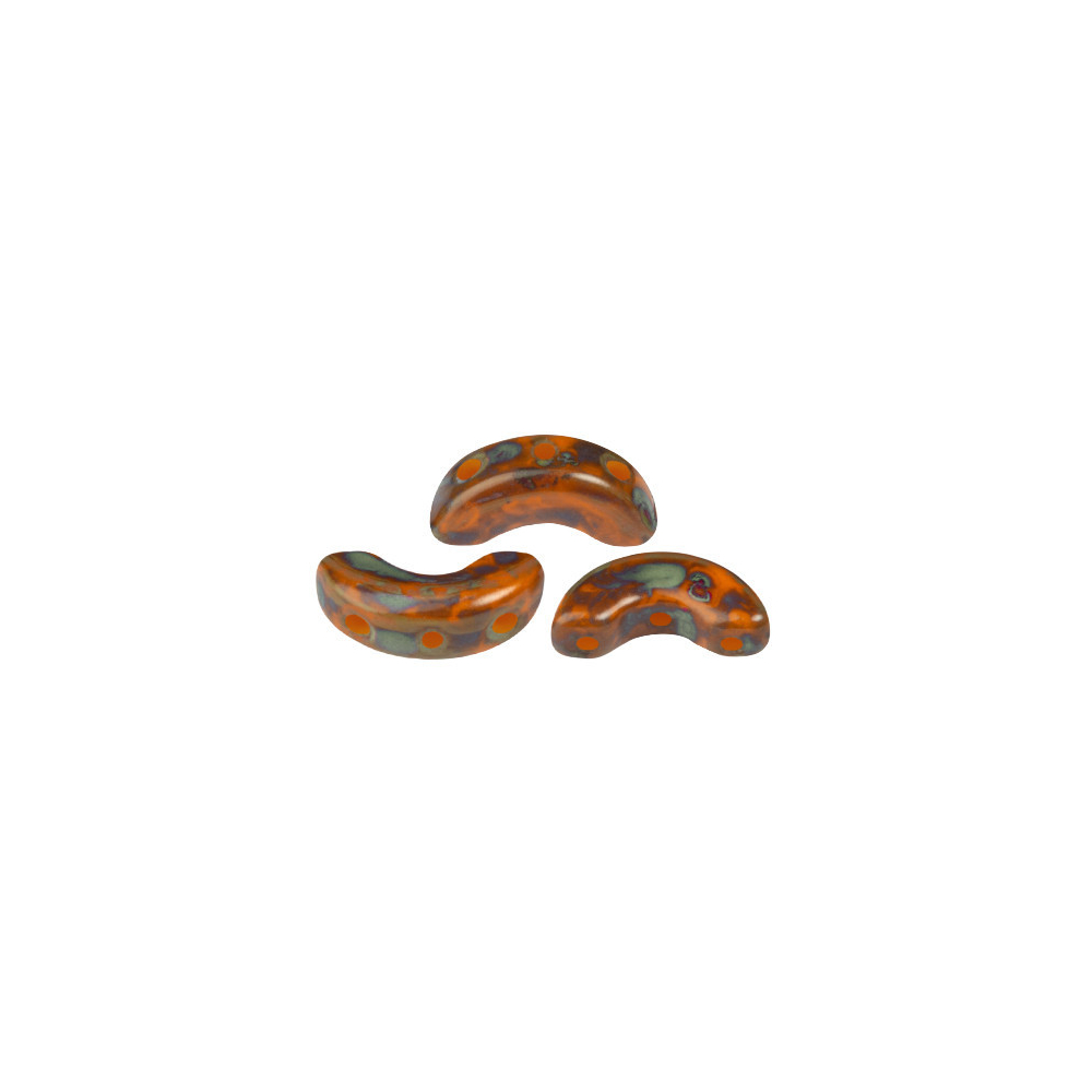 Oranžový odstín zapadajícího slunce se zrcadlí v korálcích Arcos® par Puca®, které v sobě snoubí staletou tradici českého sklářství s moderním francouzským stylem. Tato skleněná krása z Jablonecka nese rukopis návrhářky Annick Puca a představuje ideální základ pro šité šperky s nádechem luxusu. Povrchová úprava travertin dodává korálkům rustikální, ale přesto sofistikovaný vzhled, který vynikne v každém autorském projektu zaměřeném na detail a texturu.