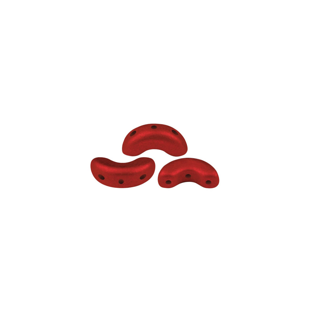 Červená metalická barva v odstínu Metalust Lipstick Red Mat vyniká svým sofistikovaným matným povrchem s jemným kovovým odleskem, který dodává šperkům hloubku a luxusní vzhled. Rozměr 5 x 10 mm ve tvaru elegantního oblouku se třemi otvory o velikosti 0,8 mm umožňuje precizní skládání komponentů do složitých vzorů. Při práci doporučujeme využít jemný rokajl Preciosa, který ideálně vyplní drobné mezery a zajistí plynulé přechody mezi jednotlivými prvky vašeho návrhu.