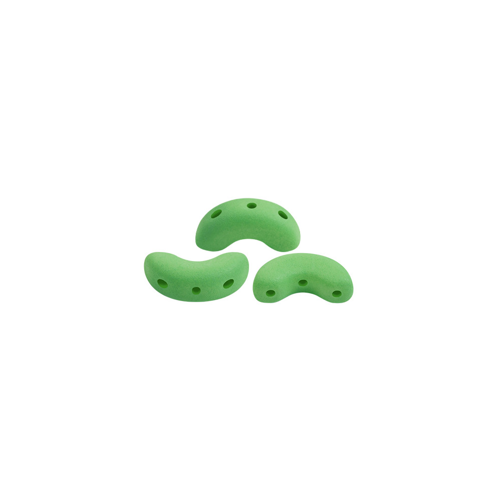 Tvar elegantního oblouku o velikosti 5 x 10 mm se třemi průvleky o průměru 0,8 mm umožňuje vytvářet složité krajkové vzory a prostorové objekty, které s běžnými korálky nejsou možné. Díky preciznímu zpracování a promyšlené geometrii Arcos® jako obloukové rámování Cabochon® par Puca® otevírá dveře k nekonečným variacím symetrických šperků.