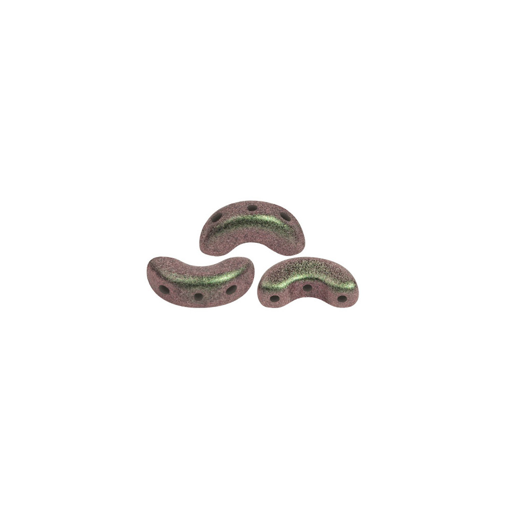 Barva Polynesian Olivine s kódem 23980/29044 okouzluje svým matným, lehce metalickým finišem, který mění odlesky podle dopadu světla od fialových tónů až po zelenkavé záblesky. Rozměry 5 x 10 mm a specifický tvar elegantního oblouku se třemi průvleky umožňují vytvářet složité prostorové struktury. Krásně ladí s kontrastní fuchsiovou, zatímco zlaté akcenty dodají výslednému šperku nádech královského luxusu.