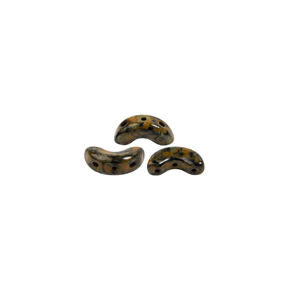 Žíhaný oranžovo-černý povrch těchto korálků dodává šperkům zemitý a luxusní nádech, který vynikne v mnoha stylech. Pro výrazný kontrast zkombunujte tuto barvu se safírově modrou, zatímco pro harmonický vzhled se skvěle hodí žlutý topaz nebo neutrální bronzová. Jelikož jsou korálky Arcos® par Puca® navrženy tak, aby tvořily ucelený systém, můžete je snadno doplnit o tvary jako Minos® par Puca® nebo Amos® par Puca®. Na našem webu naleznete také inspirativní návody, které vám pomohou plně využít potenciál tohoto unikátního tvaru z českého skla.