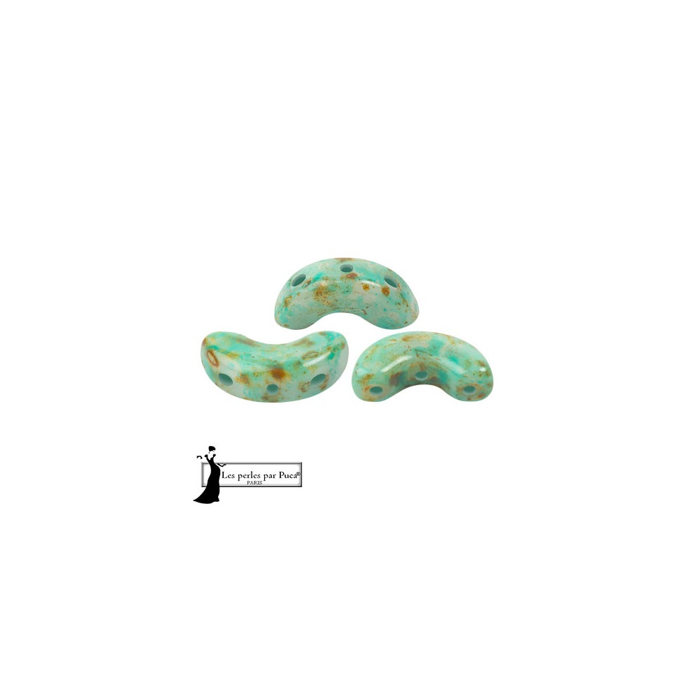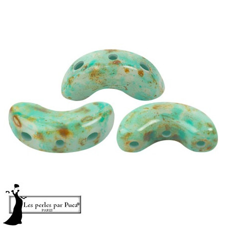 Skleněné mačkané korálky Arcos® par Puca® 5 x 10 mm OPAQUE GREEN TURQUOISE LUSTER 63130/14400...