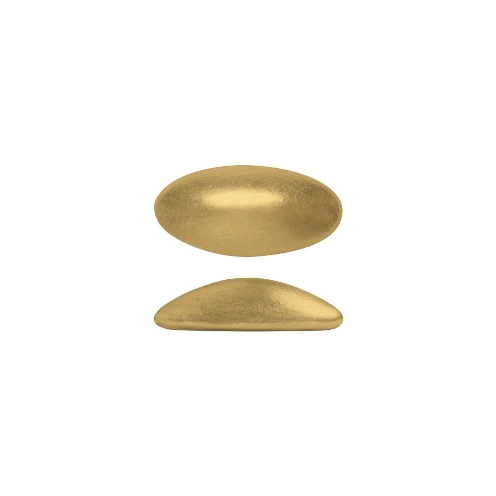 Zlatavý matný povrch korálku Athos® par Puca® evokuje odlesky zapadajícího slunce na hladině, které vdechnou vašim šperkům nádech luxusu a elegance. Tento jedinečný bezdírkový korálek ve tvaru hladkého kabošonu je ideálním středovým prvkem pro techniky obšívání nebo lepení, kde plně vynikne jeho čistá geometrická linie.