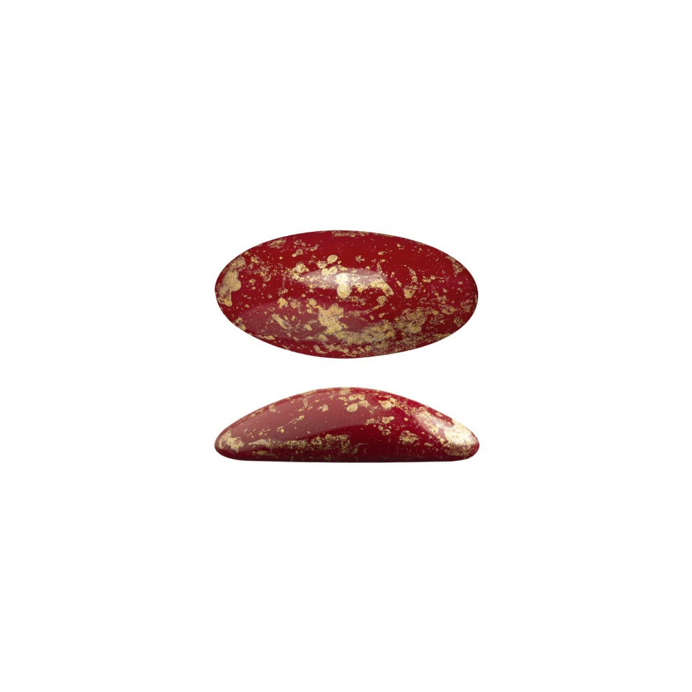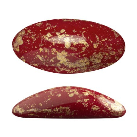 Červená barva v sytém hlubokém odstínu s fascinujícími zlatými efekty řeší dilema každé tvůrkyně, která hledá dominantní a luxusní prvek pro svůj autorský šperk. Tyto bezdírkové skleněné korálky Athos® par Puca® o rozměru 20x10x6 mm představují vrcholnou ukázku propojení moderního francouzského šarmu a poctivé české sklářské tradice. Unikátní tvar navržený designérkou Annick Puca je stvořen pro pokročilé techniky, jako je korálková výšivka nebo obšívání, kde se geometricky doplňuje s dalšími tvary z kolekce Amos® par Puca® nebo Arcos® par Puca®.