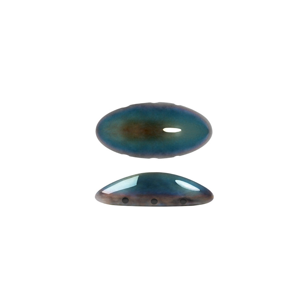 Aktuální trendy v autorské bižuterii směřují k výrazným geometrickým tvarům a hlubokým, proměnlivým barvám, které dodávají šperkům nádech luxusu a tajemna. Athos® par Puca® v podmanivém odstínu FULL CELSIAN představuje vrcholné spojení elegantního francouzského designu od Annick Puca a precizní české sklářské tradice. Díky svému unikátnímu klenutému tvaru a velikosti 20x10x6 mm se tento třídírkový korálek stává dominantním prvkem náhrdelníků i náramků, kde vynikne jeho metalický povrch s modrozelenými a bronzovými odlesky.