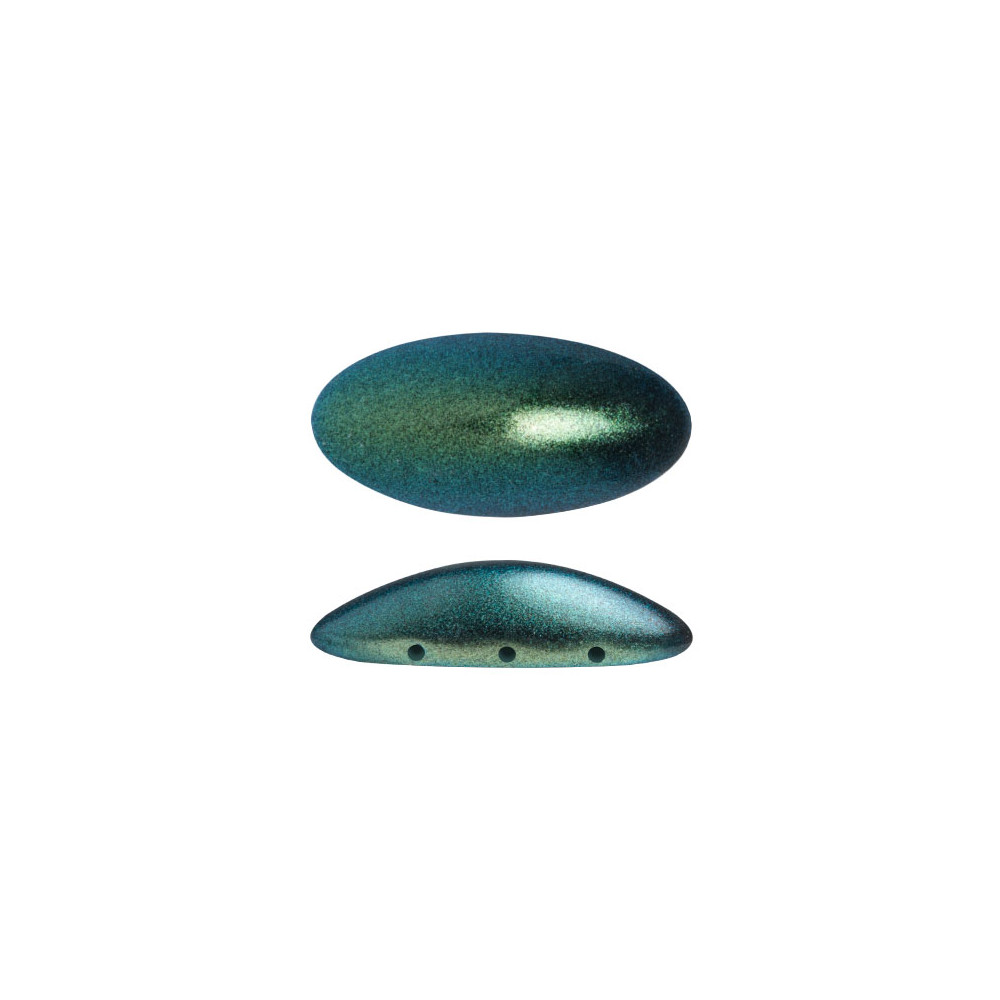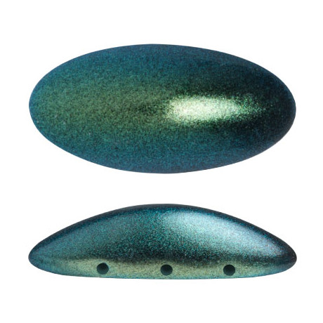 3 dírkové skleněné korálky Athos® par Puca® METALLIC MAT GREEN TURQUOISE 23980/94104