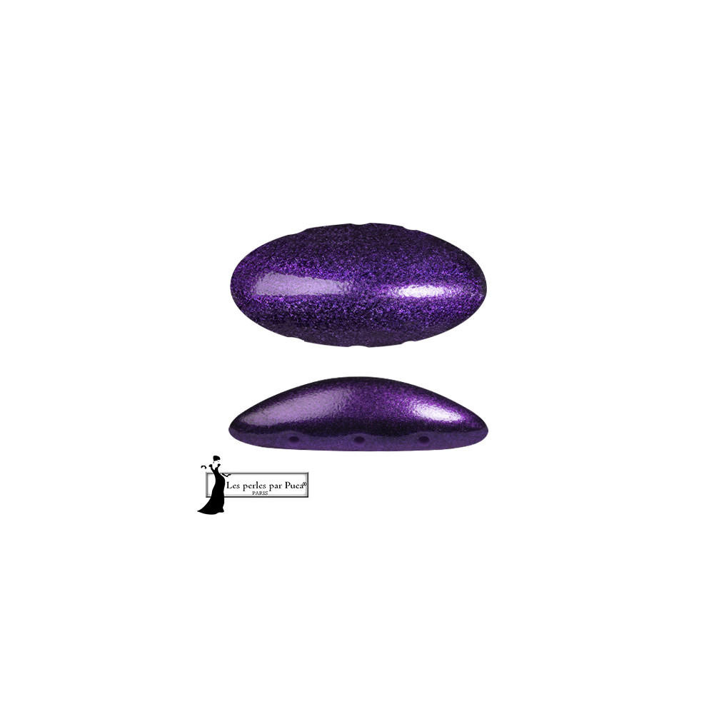 3 dírkové skleněné korálky Athos® par Puca® METALLIC MAT PURPLE 23980/79021 Velikost: 20 x 10 x 6...