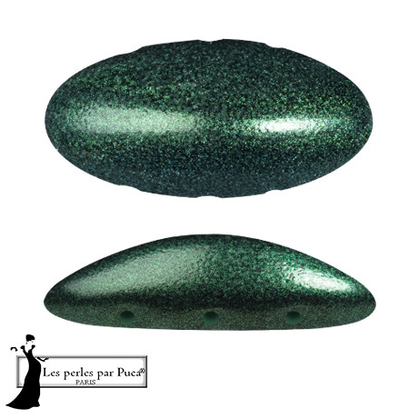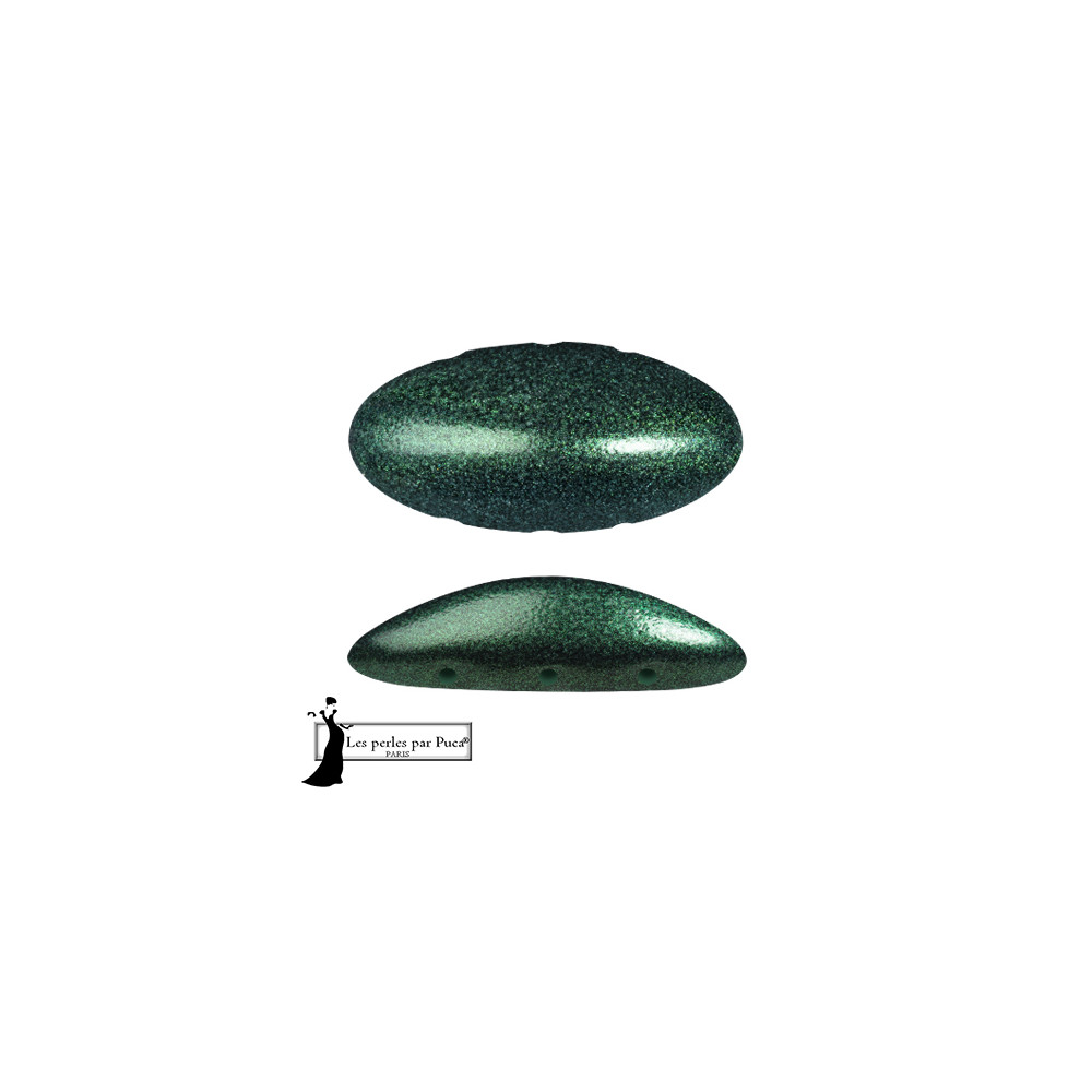 3 dírkové skleněné korálky Athos® par Puca® METALLIC GREEN FOREST 23980/94204