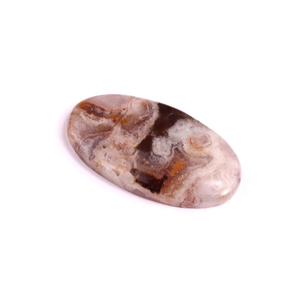 Kabošon z přírodního kamene Auralit je výjimečným příkladem krásy přírody. Tento kámen je známý jemnou, ale zároveň bohatou texturou, která kombinuje odstíny růžové, béžové, šedé a jemných krystalických struktur. Kabošon je pečlivě vyřezán a vyleštěn tak, aby zachoval svou přirozenou krásu a originální vzory, které se v každém kusu liší.