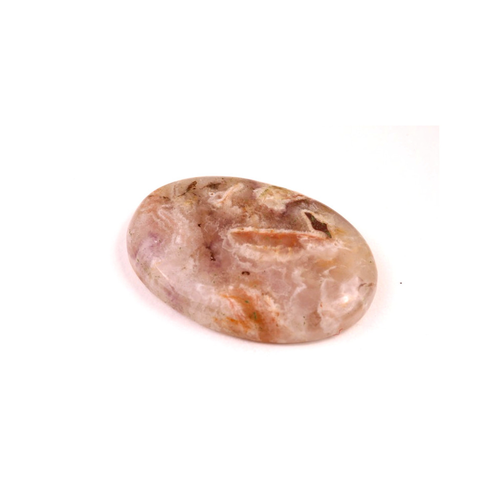 Kabošon z přírodního kamene Auralit je výjimečným příkladem krásy přírody. Tento kámen je známý jemnou, ale zároveň bohatou texturou, která kombinuje odstíny růžové, béžové, šedé a jemných krystalických struktur. Kabošon je pečlivě vyřezán a vyleštěn tak, aby zachoval svou přirozenou krásu a originální vzory, které se v každém kusu liší.