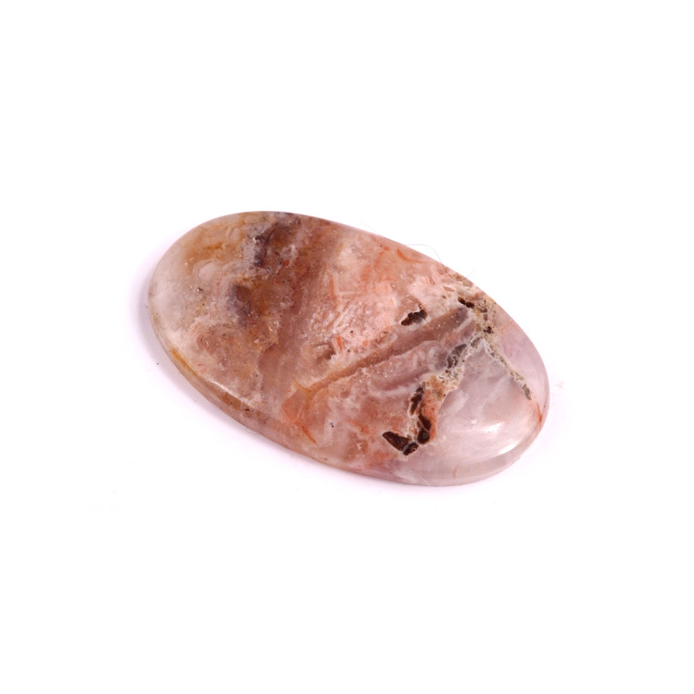 Kabošon z přírodního kamene Auralit je výjimečným příkladem krásy přírody. Tento kámen je známý jemnou, ale zároveň bohatou texturou, která kombinuje odstíny růžové, béžové, šedé a jemných krystalických struktur. Kabošon je pečlivě vyřezán a vyleštěn tak, aby zachoval svou přirozenou krásu a originální vzory, které se v každém kusu liší.