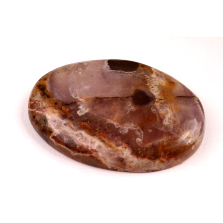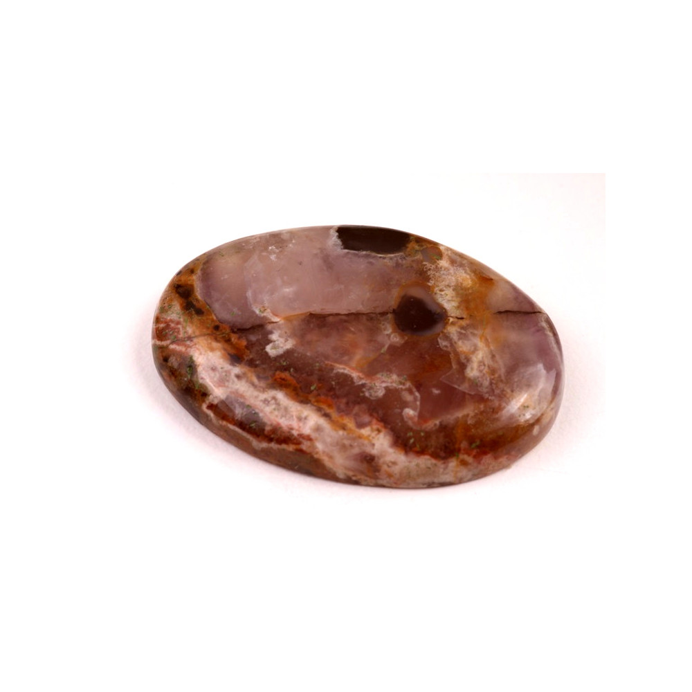 Kabošon z přírodního kamene Auralit je výjimečným příkladem krásy přírody. Tento kámen je známý jemnou, ale zároveň bohatou texturou, která kombinuje odstíny růžové, béžové, šedé a jemných krystalických struktur. Kabošon je pečlivě vyřezán a vyleštěn tak, aby zachoval svou přirozenou krásu a originální vzory, které se v každém kusu liší.