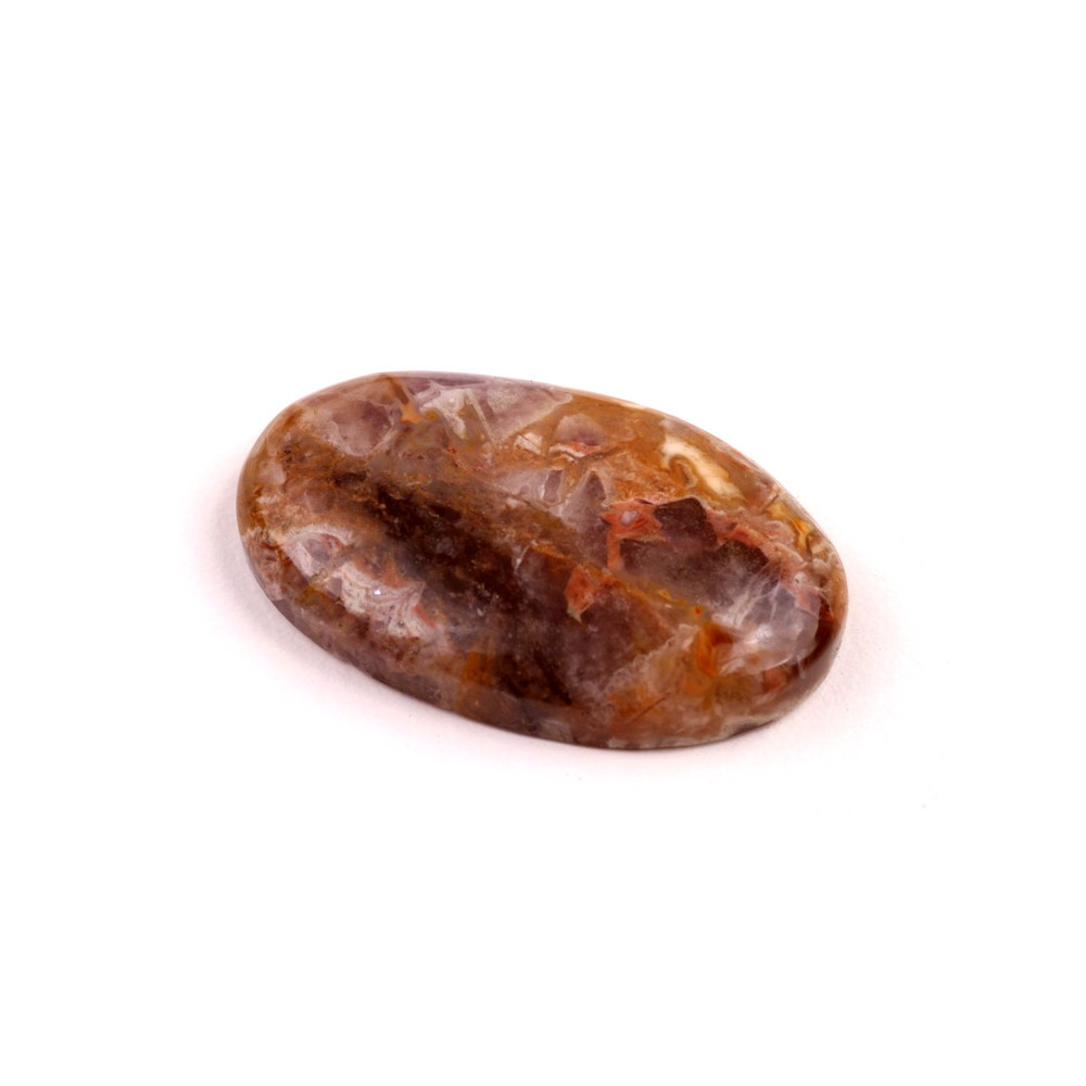 Kabošon z přírodního kamene Auralit je výjimečným příkladem krásy přírody. Tento kámen je známý jemnou, ale zároveň bohatou texturou, která kombinuje odstíny růžové, béžové, šedé a jemných krystalických struktur. Kabošon je pečlivě vyřezán a vyleštěn tak, aby zachoval svou přirozenou krásu a originální vzory, které se v každém kusu liší.