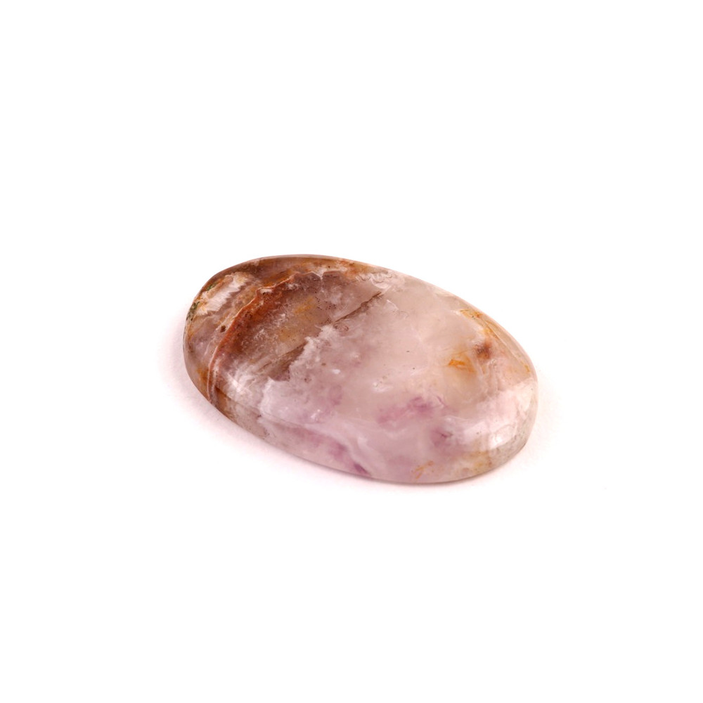 Kabošon z přírodního kamene Auralit je výjimečným příkladem krásy přírody. Tento kámen je známý jemnou, ale zároveň bohatou texturou, která kombinuje odstíny růžové, béžové, šedé a jemných krystalických struktur. Kabošon je pečlivě vyřezán a vyleštěn tak, aby zachoval svou přirozenou krásu a originální vzory, které se v každém kusu liší.